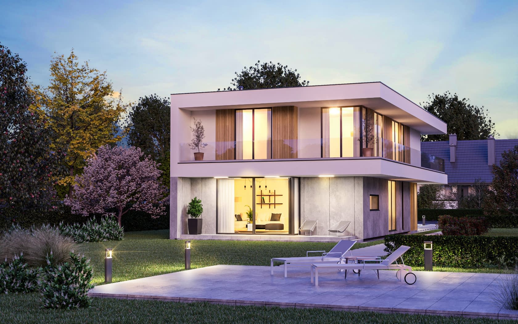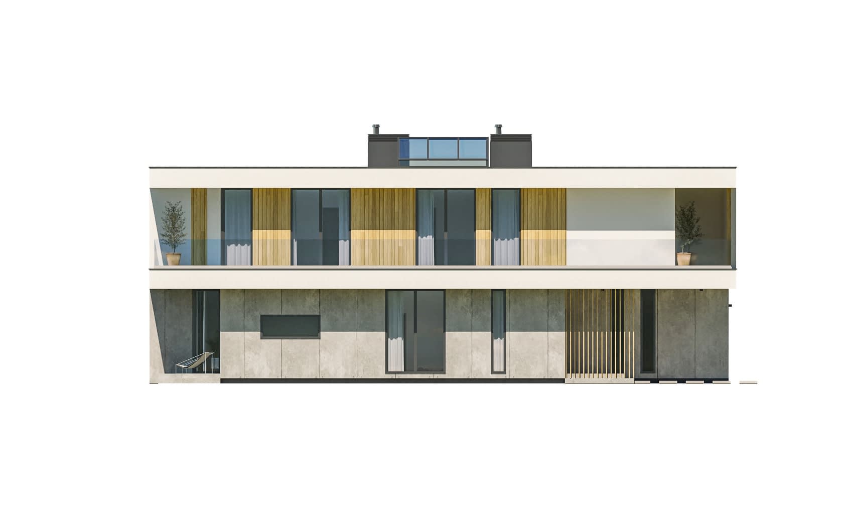 - elewacje (frontowa, dwie elewacje boczne, ogrodowa) – dokładny wygląd domu z każdej strony.