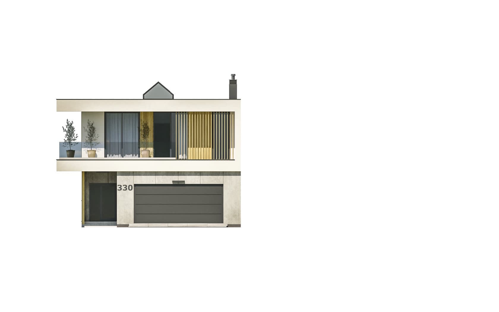 Układ funkcjonalny budynku: Kondygnacja parteru, każdego z lokali składa się z przedsionka wejściowego, salonu z jadalnią oraz kuchnią, łazienki, gabinetu, kotłowni oraz garażu dwustanowiskowego Kondygnacja piętra każdego z lokali składa się z głównej sypialni z łazienką oraz garderobą, trzech pokoi sypialnianych, łazienki, pralni, oraz korytarza z klatką schodową łączącego pomieszczenia. Całość zabudowy okala taras zewnętrzny. D330A to wersja tego projektu w zbliźniaczeniu. WYSOKOŚĆ BUDYNKU (od poz. posadzki parteru +/-0.00 do świetlika) 7,76 m WYSOKOŚĆ BUDYNKU (od poz. terenu do świetlika) MAX. 8,10 m WYSOKOŚĆ BUDYNKU (od poz. terenu do dachu płaskiego) MAX. 7,20 mKonstrukcja
