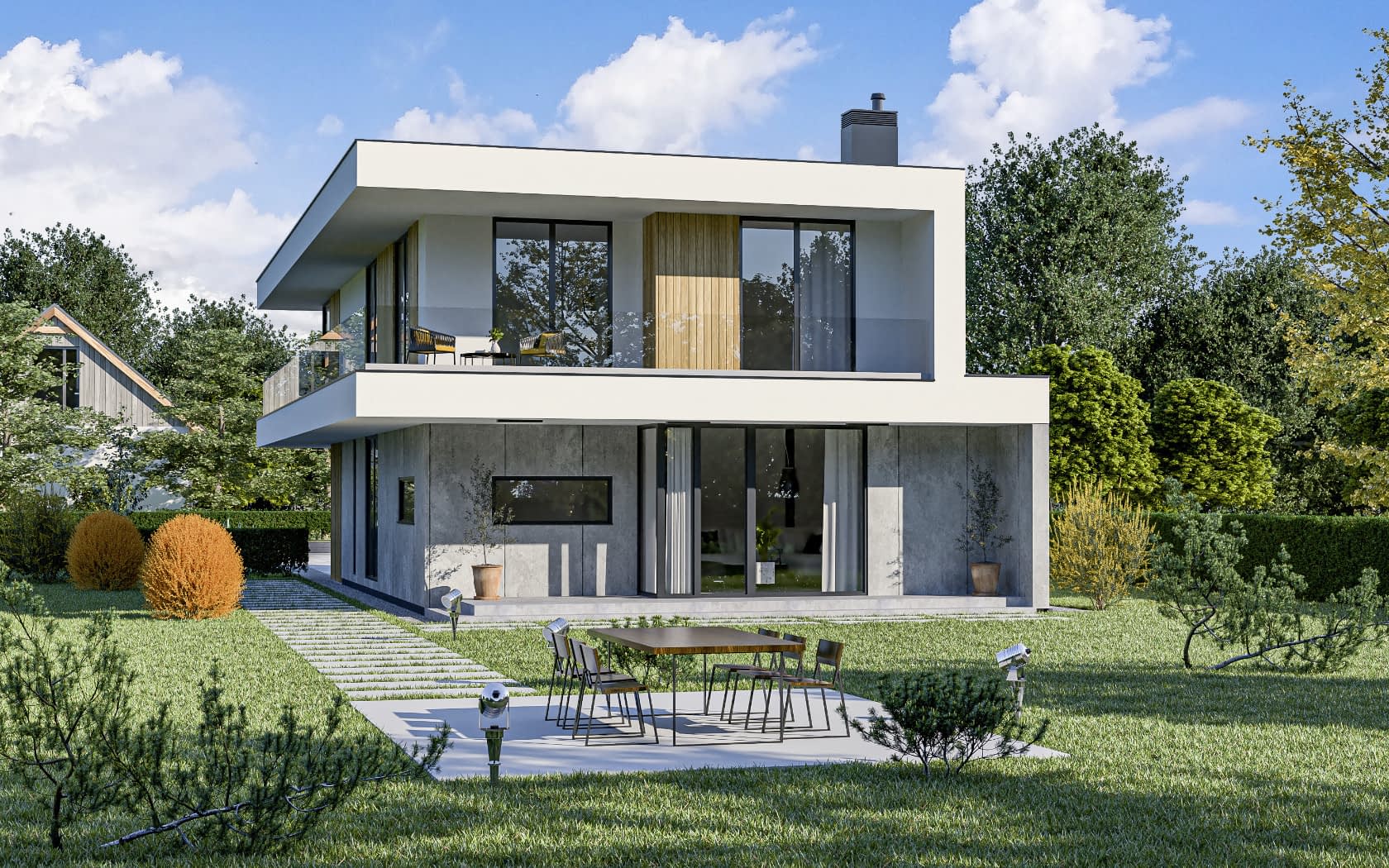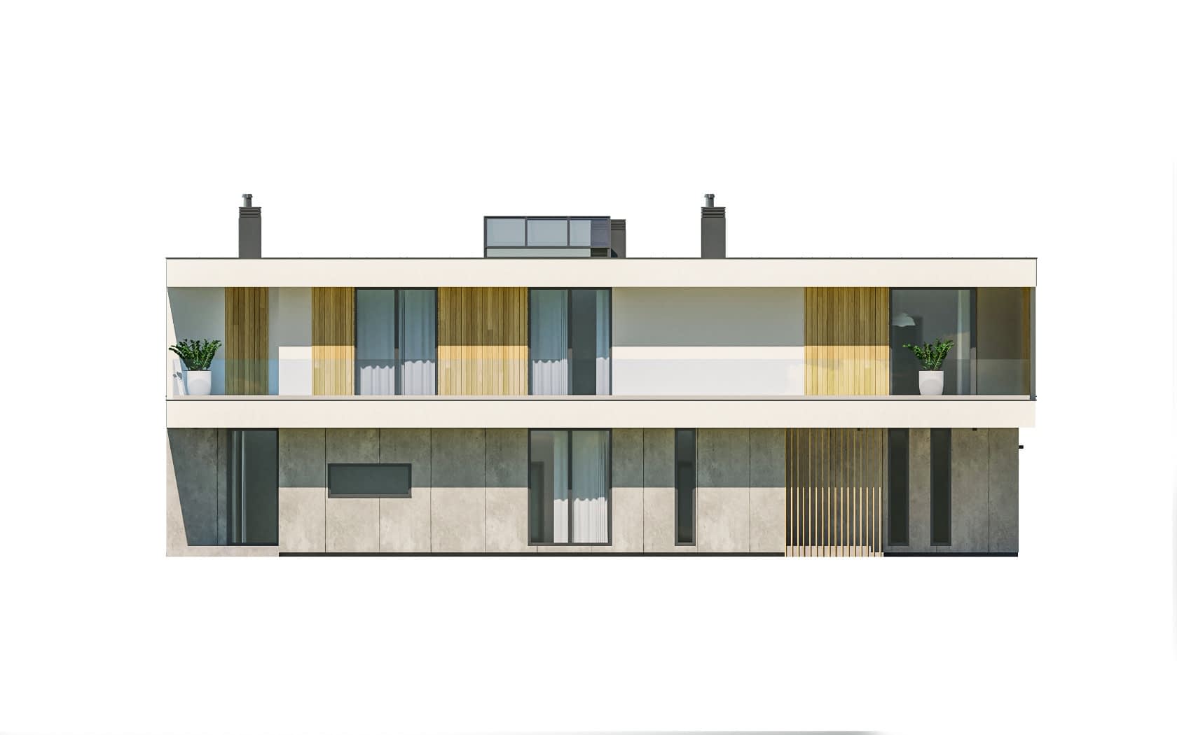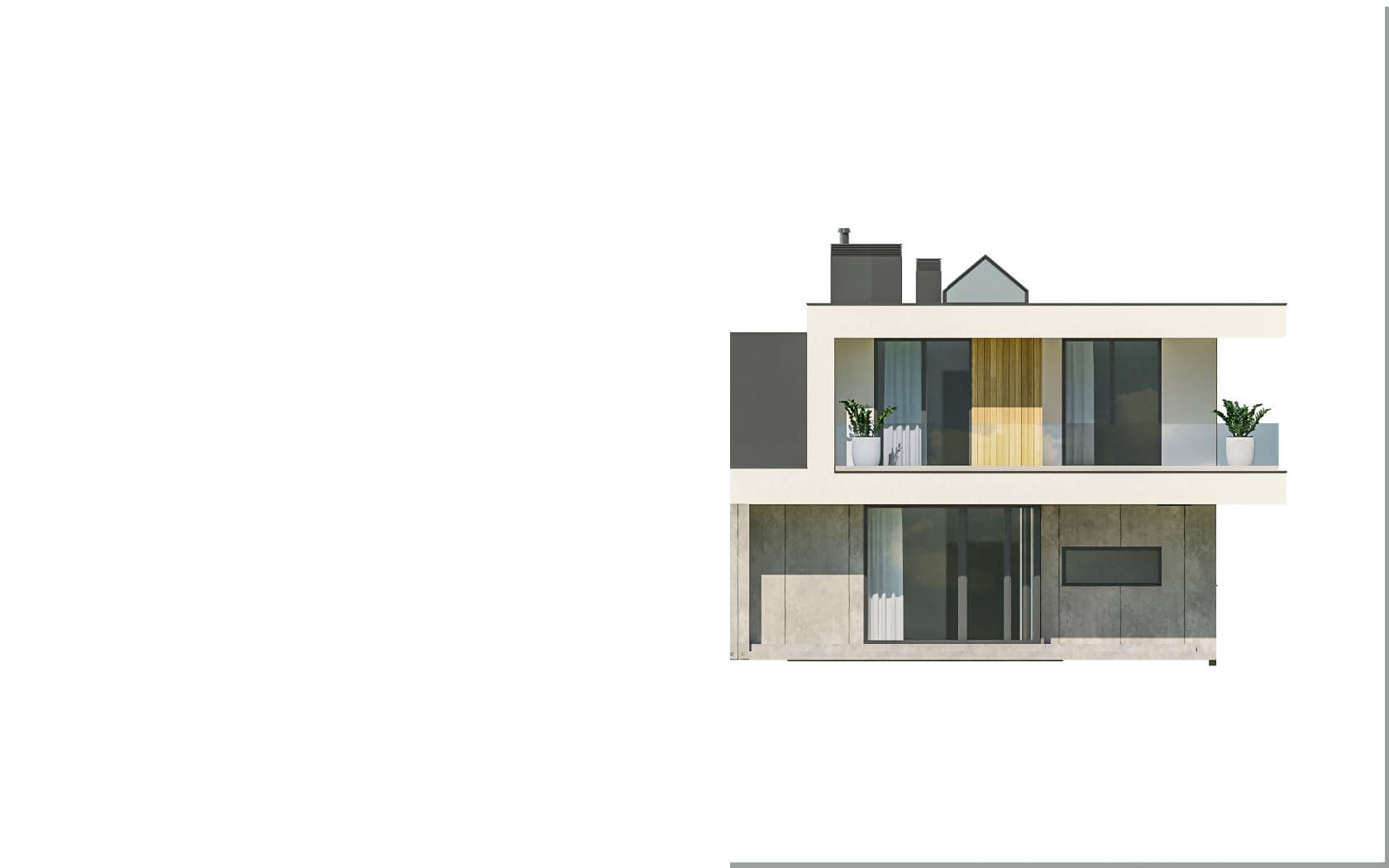 - elewacje (frontowa, dwie elewacje boczne, ogrodowa) – dokładny wygląd domu z każdej strony.