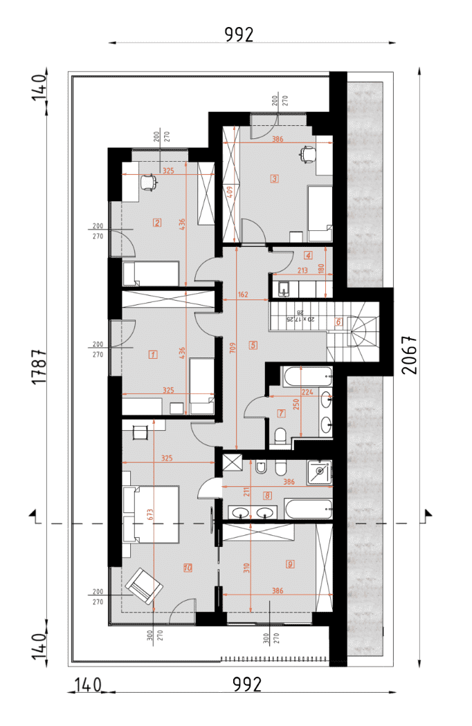 - rzut więźby dachowej – wymiary i rozmieszczenie elementów konstrukcji dachu.