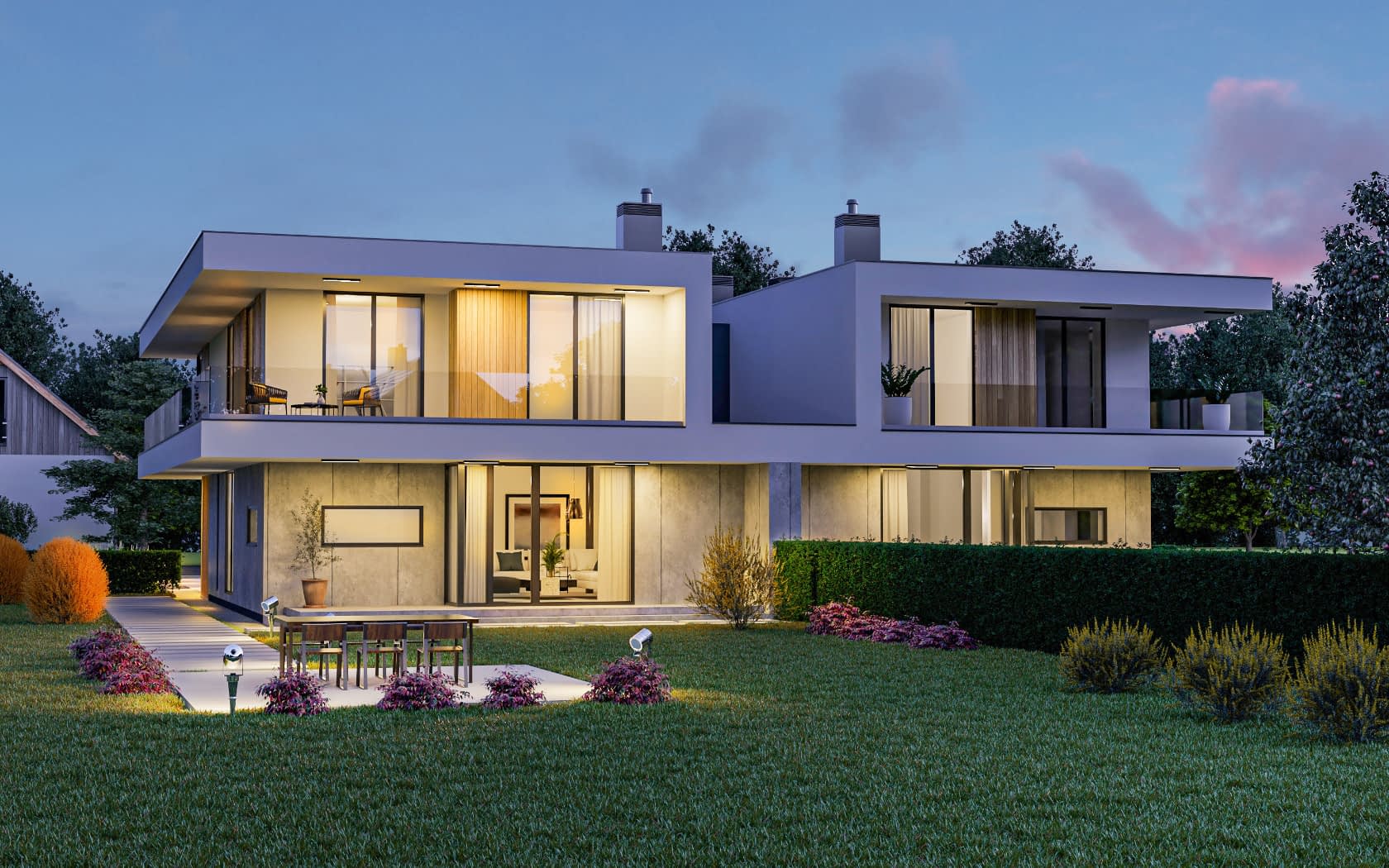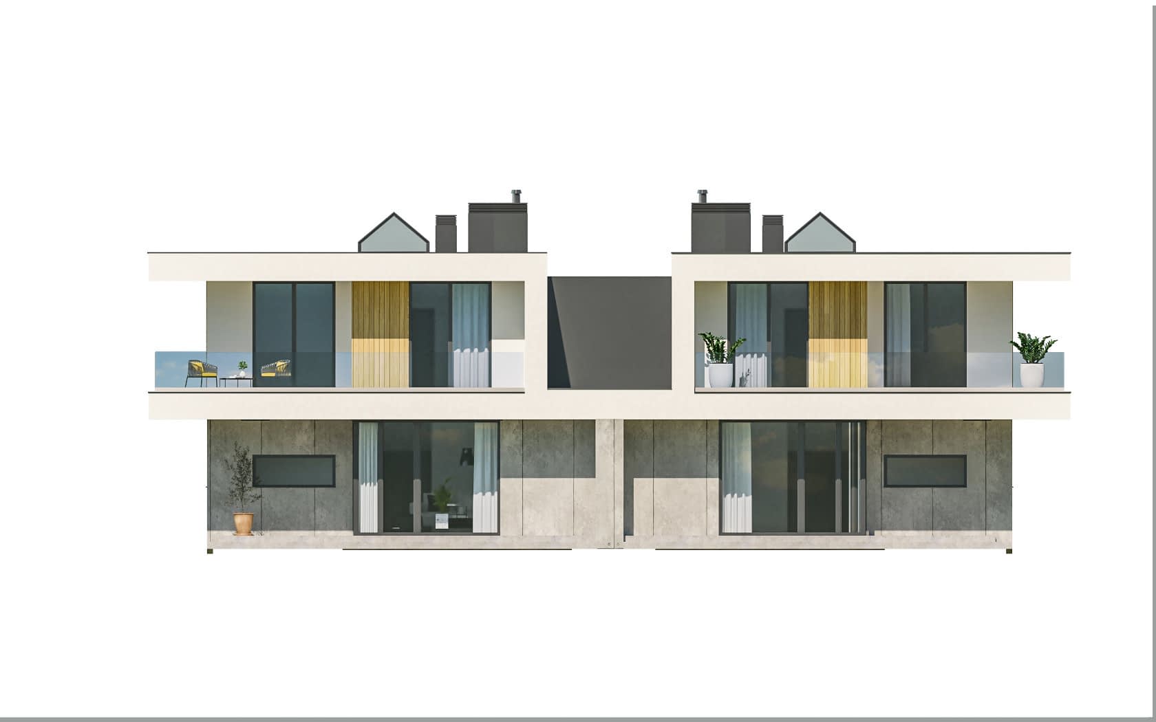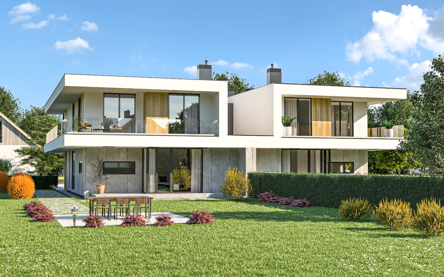 - elewacje (frontowa, dwie elewacje boczne, ogrodowa) – dokładny wygląd domu z każdej strony.