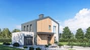 Projekt domu jednorodzinnego z piętrem i garażem. Budynek jest prosty i oszczędny w formie, co sprzyja pozytywnym doznaniom estetycznym, a także zapewnia harmonijne wykończenie całości. Dzięki prostej bryle funkcjonalnie wykorzystana została dostępna przestrzeń. W projekcie zastosowano duże przeszklenia, co jest wyrazem nowoczesności i zapewnia duży dostęp światła naturalnego oraz sprawia, że wnętrza są przestronniejsze. Pomieszczenia zaprojektowano w taki sposób, by maksymalnie wykorzystać przestrzeń. Powierzchnia dachu dwuspadowego: 72,00m2 Powierzchnia stropodachu: 20,40m2Konstrukcja