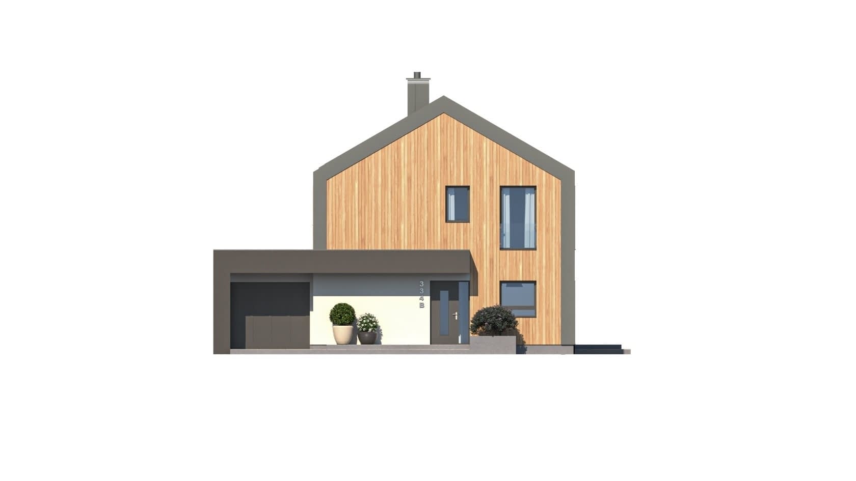 Projekt domu jednorodzinnego z piętrem i garażem. Budynek jest prosty i oszczędny w formie, co sprzyja pozytywnym doznaniom estetycznym, a także zapewnia harmonijne wykończenie całości. Dzięki prostej bryle funkcjonalnie wykorzystana została dostępna przestrzeń. W projekcie zastosowano duże przeszklenia, co jest wyrazem nowoczesności i zapewnia duży dostęp światła naturalnego oraz sprawia, że wnętrza są przestronniejsze. Pomieszczenia zaprojektowano w taki sposób, by maksymalnie wykorzystać przestrzeń. Powierzchnia dachu dwuspadowego: 72,9m2 Powierzchnia stropodachu: 32m2Konstrukcja