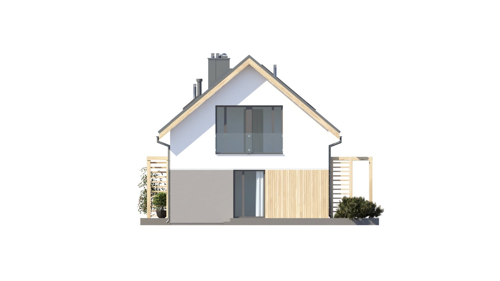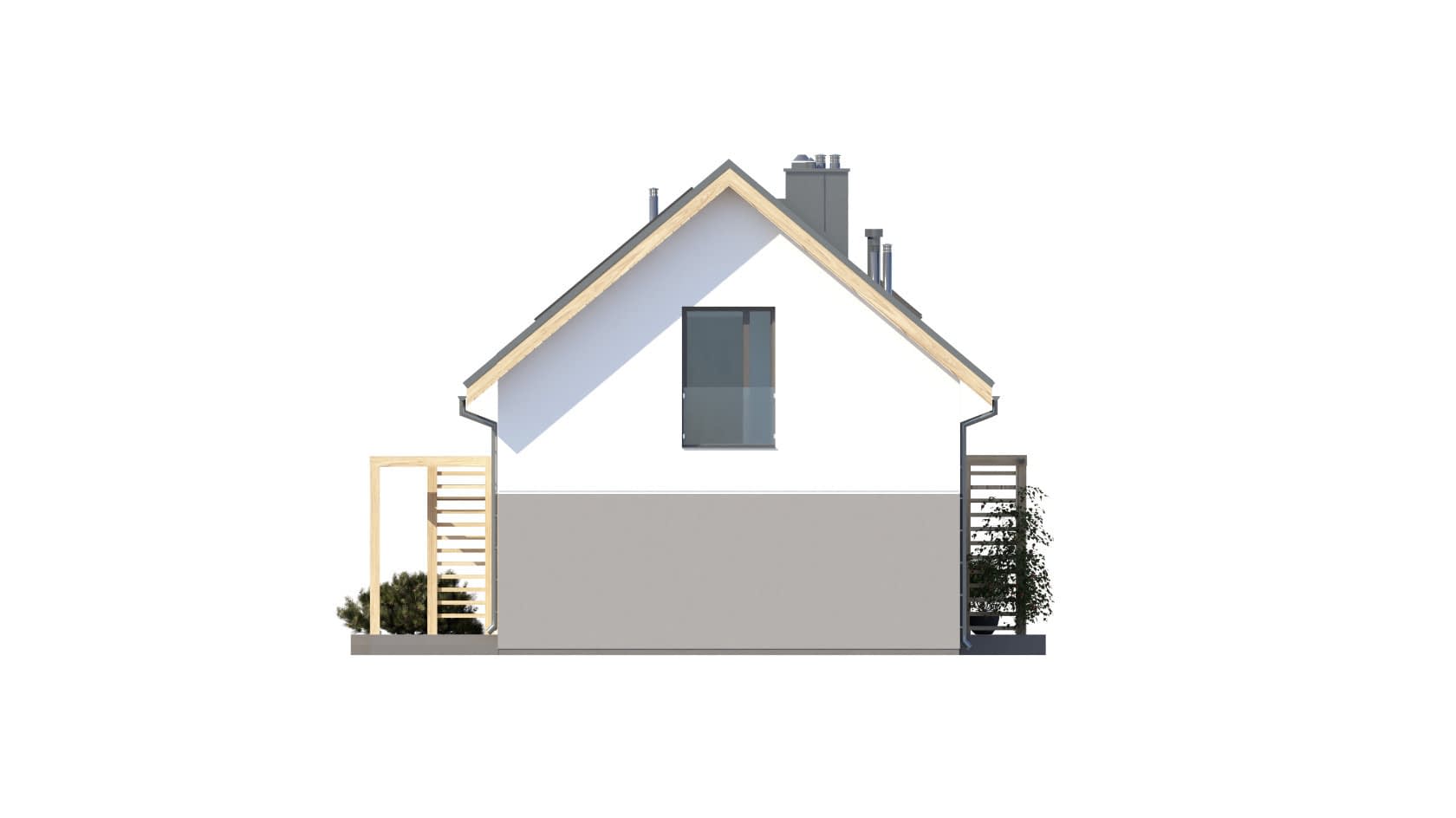 - elewacje (frontowa, dwie elewacje boczne, ogrodowa) – dokładny wygląd domu z każdej strony.