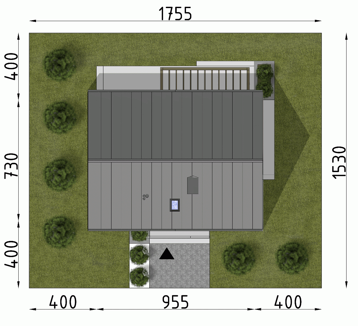 - Minimalne wymiary działki15.3 x 17.55m