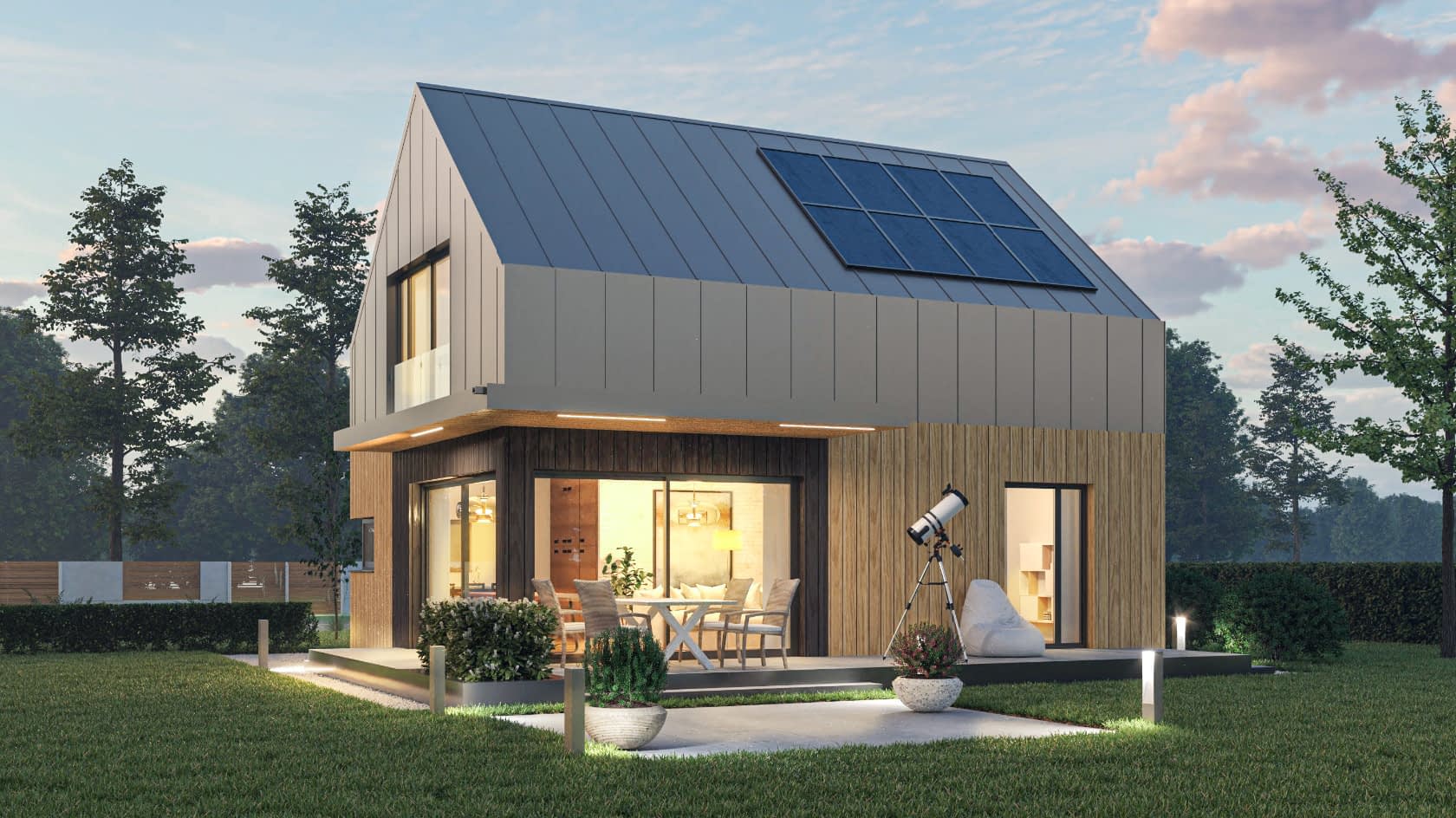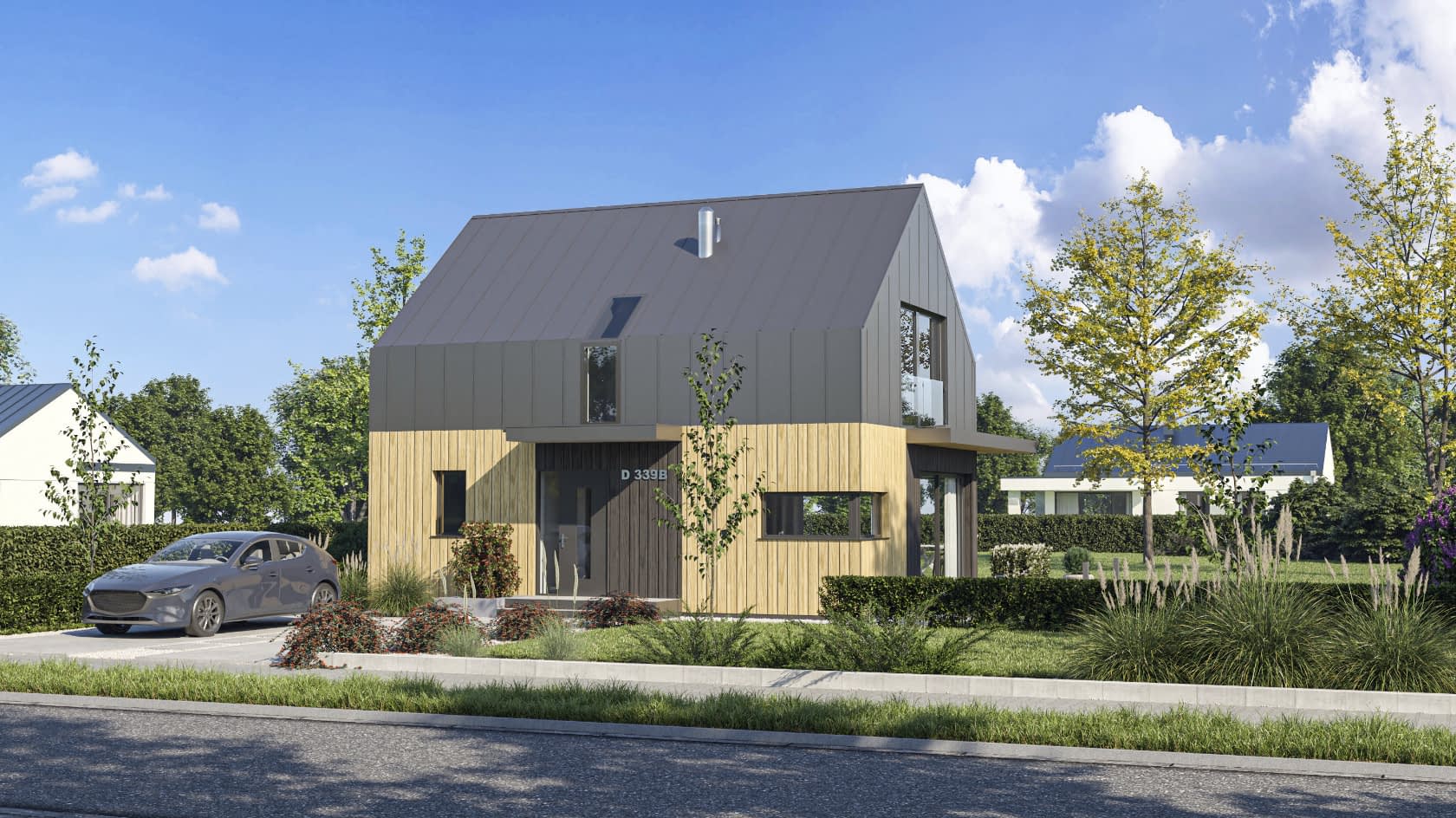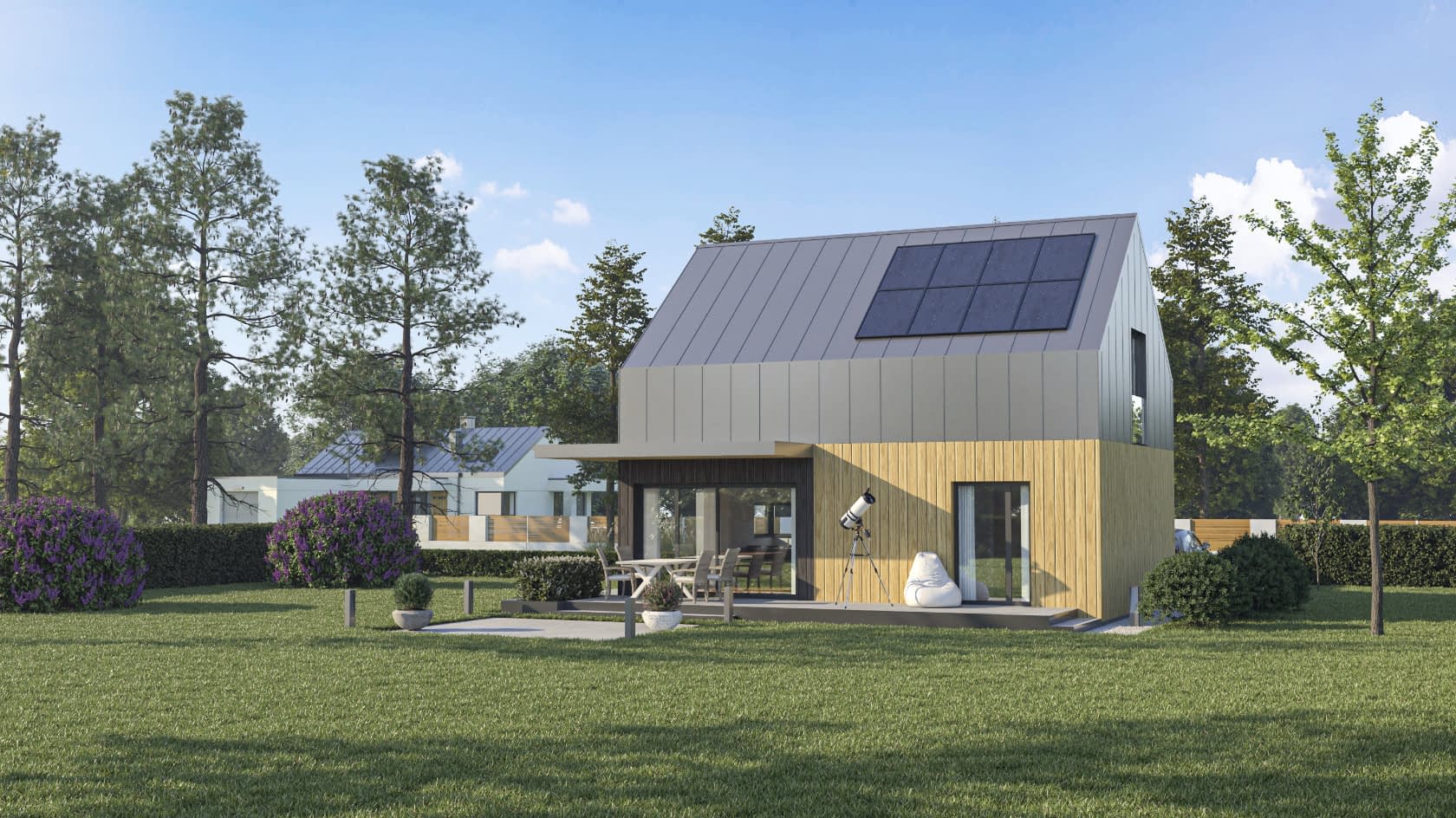 - elewacje (frontowa, dwie elewacje boczne, ogrodowa) – dokładny wygląd domu z każdej strony.