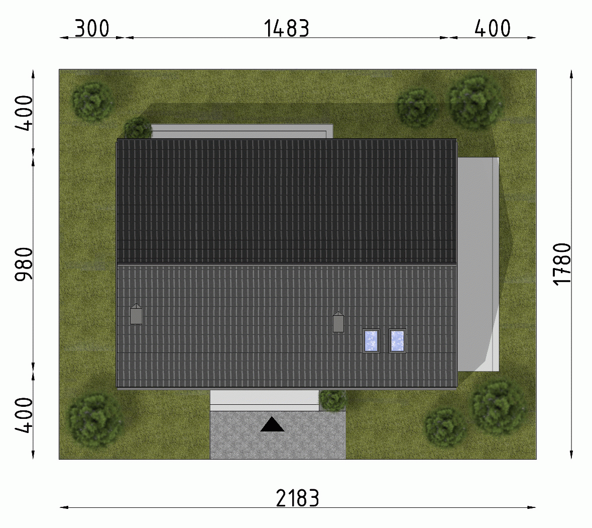 - Minimalne wymiary działki17.8 x 21.83m