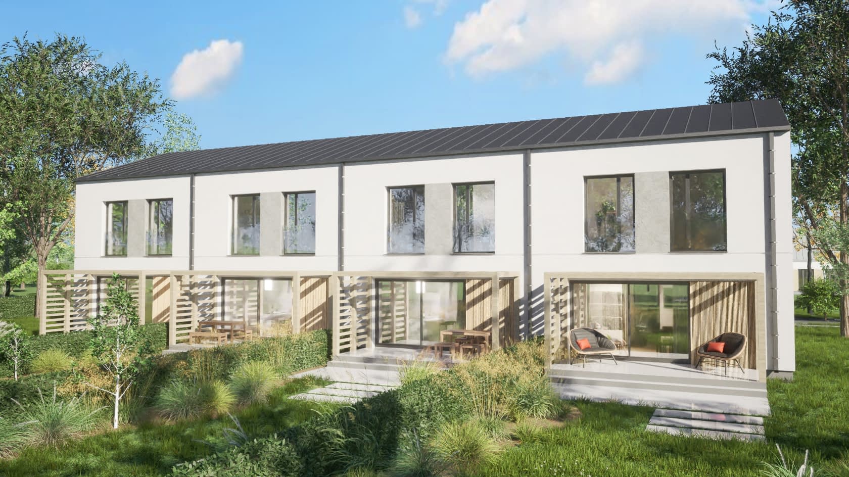 - elewacje (frontowa, dwie elewacje boczne, ogrodowa) – dokładny wygląd domu z każdej strony.