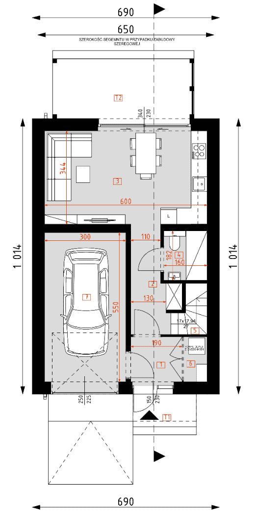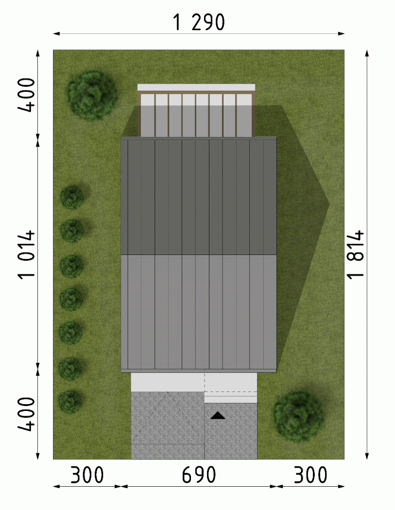 - Minimalne wymiary działki18.14 x 12.9m