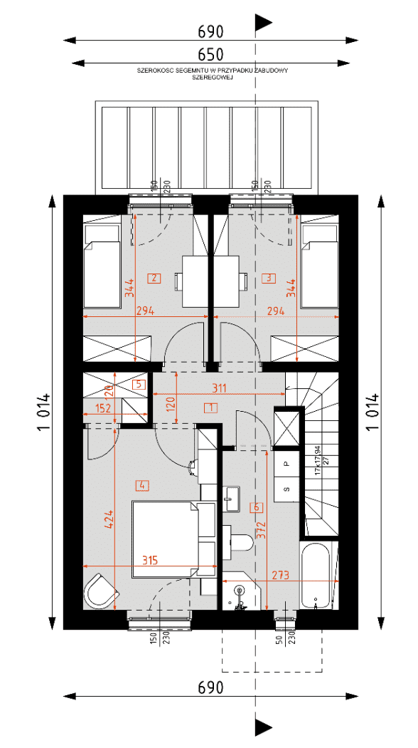 - rzuty wszystkich kondygnacji (np. parter, piwnica, piętro) – rozmieszczenie i wymiary wszystkich pomieszczeń, rozmieszczenie i wielkość otworów okiennych i drzwiowych, rozmieszczenie kominów, sugerowana aranżacja wnętrz.