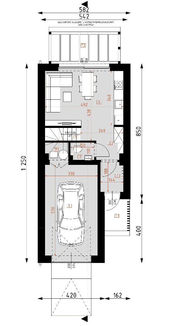 Dom jednorodzinny z piętrem w technologii murowanej. Możliwość zbliźniaczenia lub postawienia w zabudowie szeregowej. Podany koszt, to koszt domu wolnostojącego. Wycena dla zabudowy szeregowej indywidualnie w zależności od ilości segmentów.Konstrukcja
