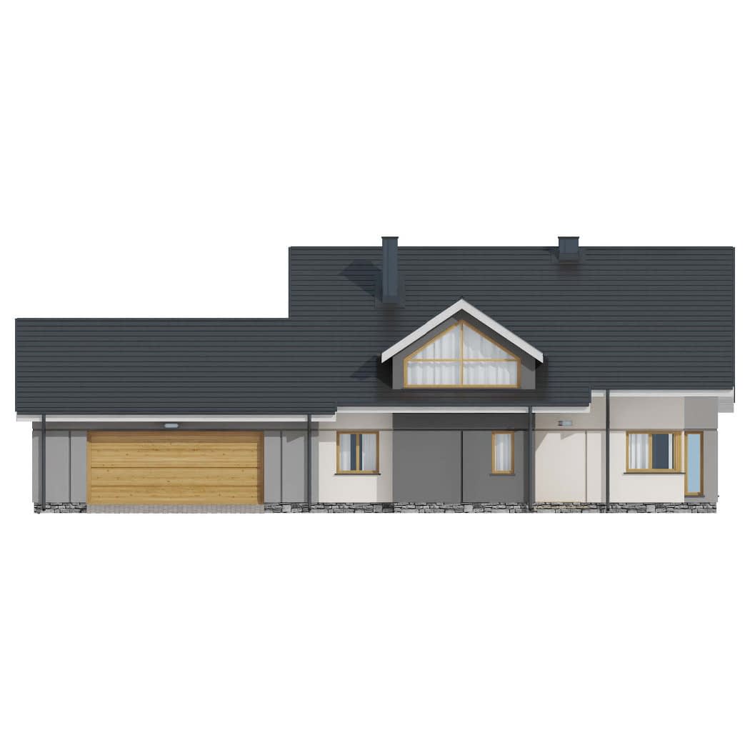 Dom mieszkalny jednorodzinny parterowy z poddaszem użytkowym. Idealny dla 4-5-osobowej rodziny. Prosta bryła budynku oraz nieskomplikowana konstrukcja wpływają na niższe koszty budowy. Bardzo funkcjonalny podział pomieszczeń z oddzielną strefą techniczną, strefą dzienną i nocną. Atutem tego projektu jest również nowoczesny wygląd elewacji. Wersja drewniana jest dostępna.Konstrukcja