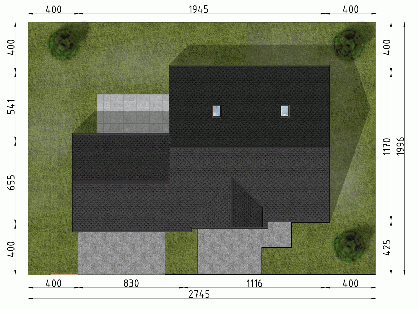 - Minimalne wymiary działki19.96 x 27.45m