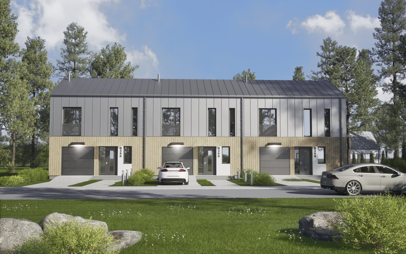 Elewacja: tynk elewacyjny akrylowy blacha, panele drewniane lub drewnopodobne