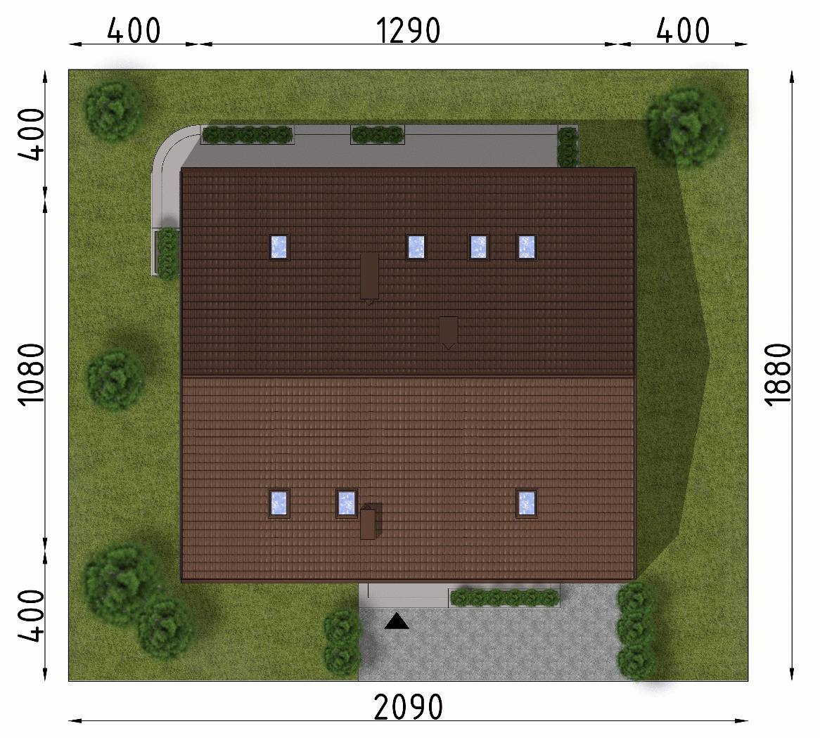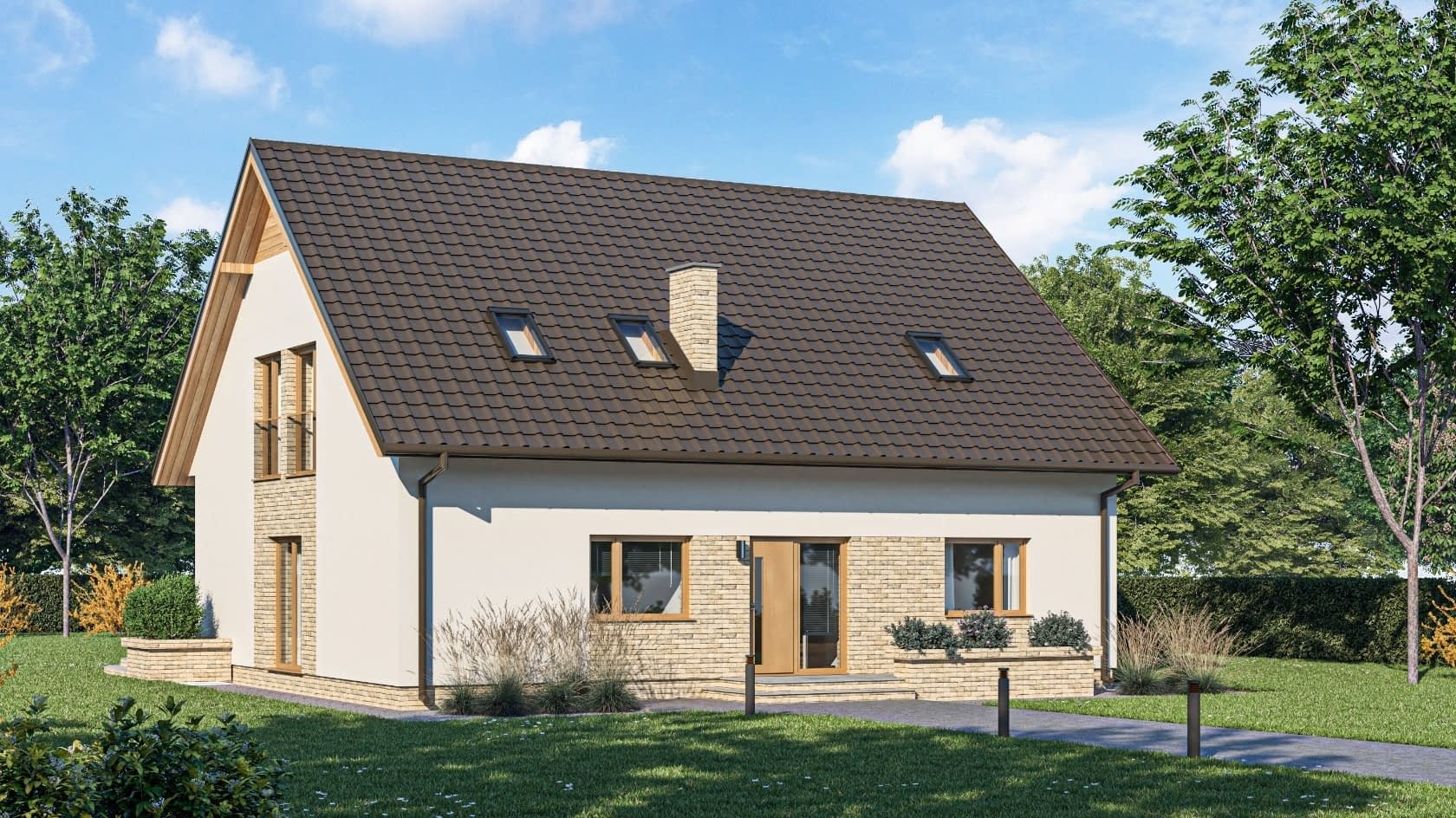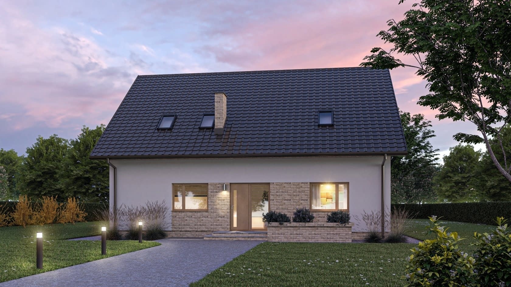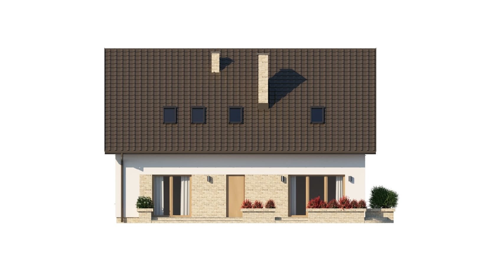 - elewacje (frontowa, dwie elewacje boczne, ogrodowa) – dokładny wygląd domu z każdej strony.
