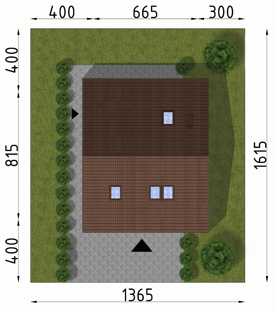 - Minimalne wymiary działki16.15 x 13.65m