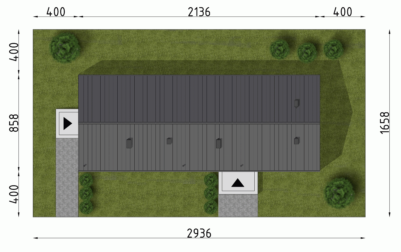 - elewacje (frontowa, dwie elewacje boczne, ogrodowa) – dokładny wygląd domu z każdej strony.