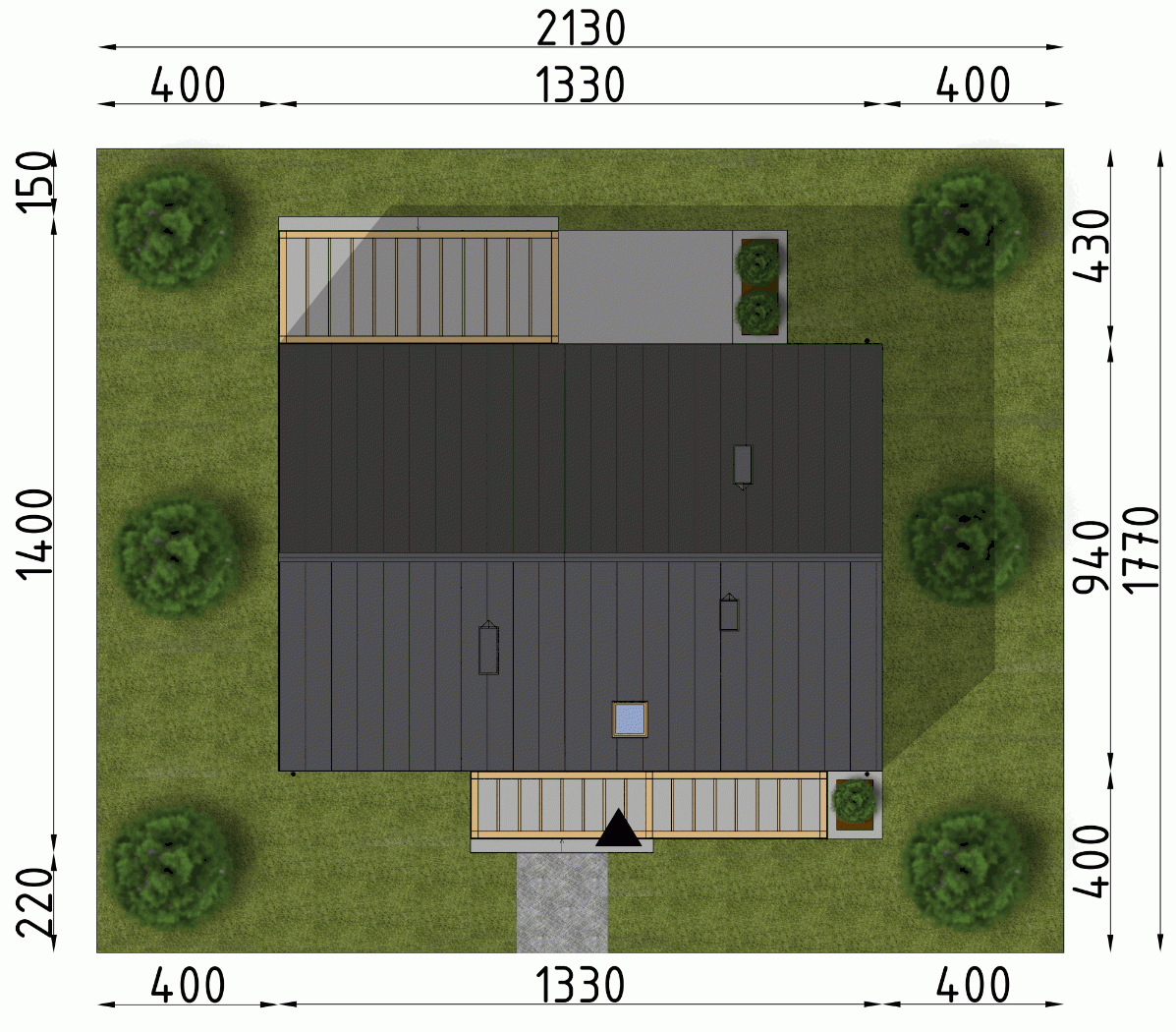 - elewacje (frontowa, dwie elewacje boczne, ogrodowa) – dokładny wygląd domu z każdej strony.