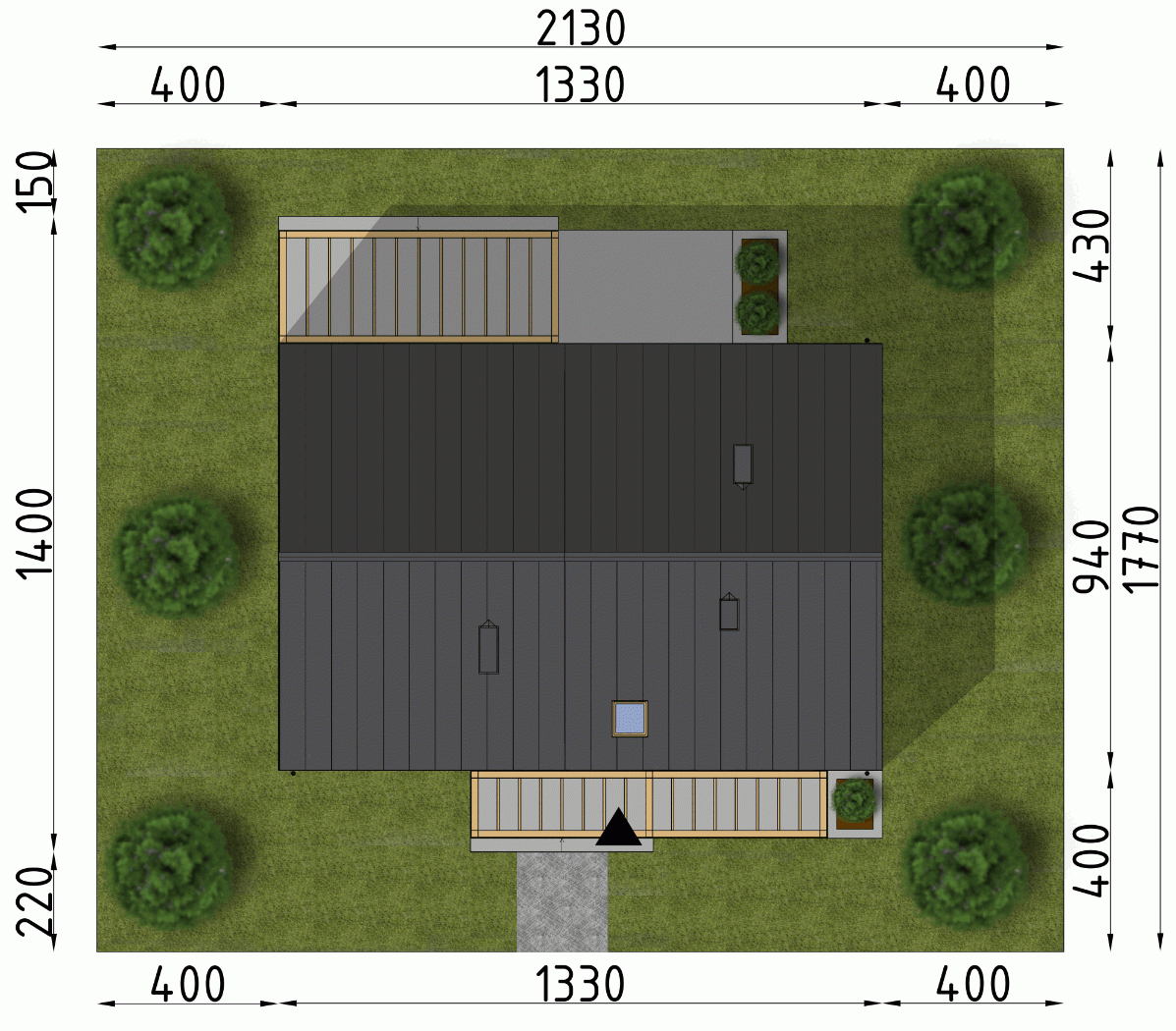 - Minimalne wymiary działki17.7 x 21.3m