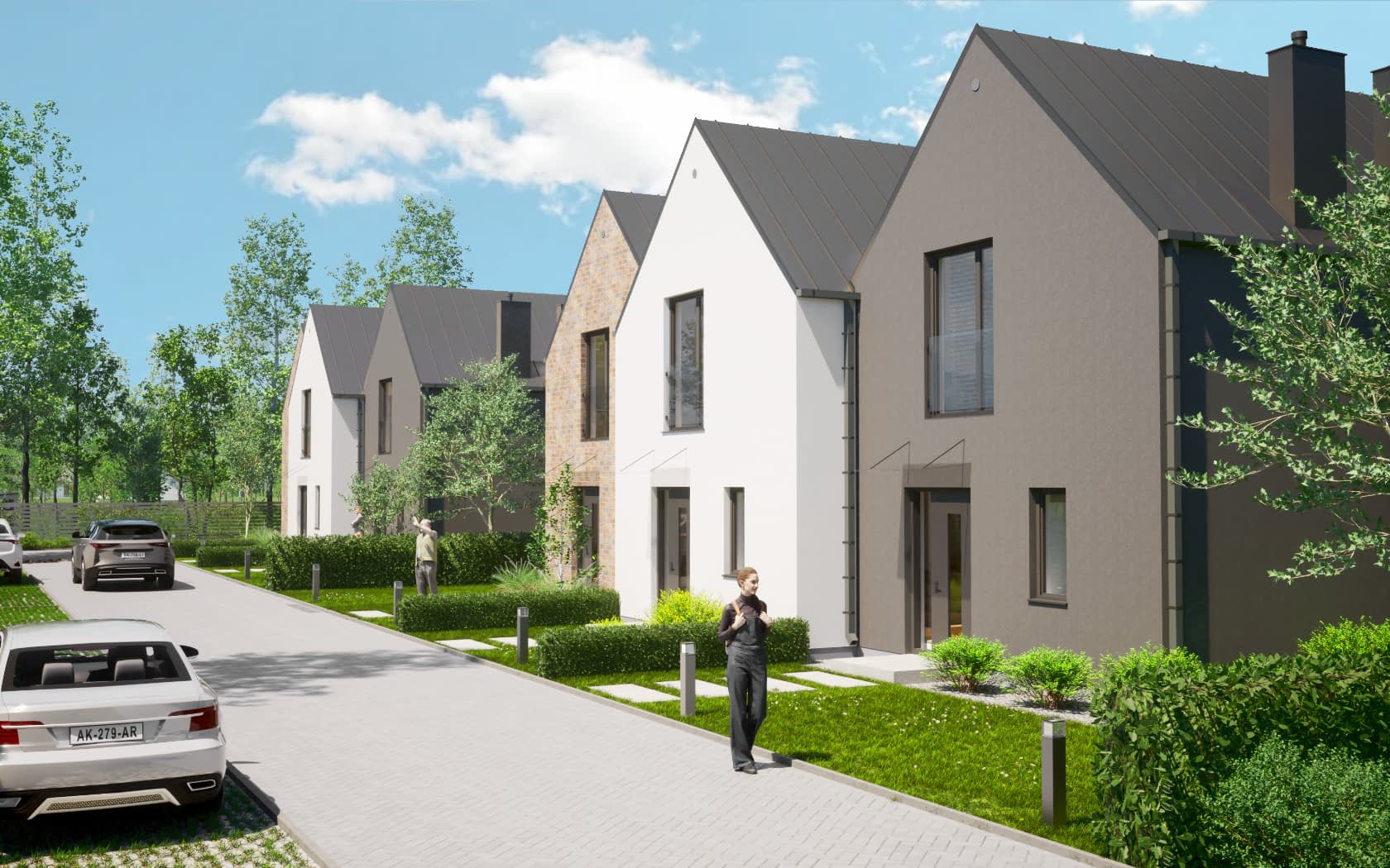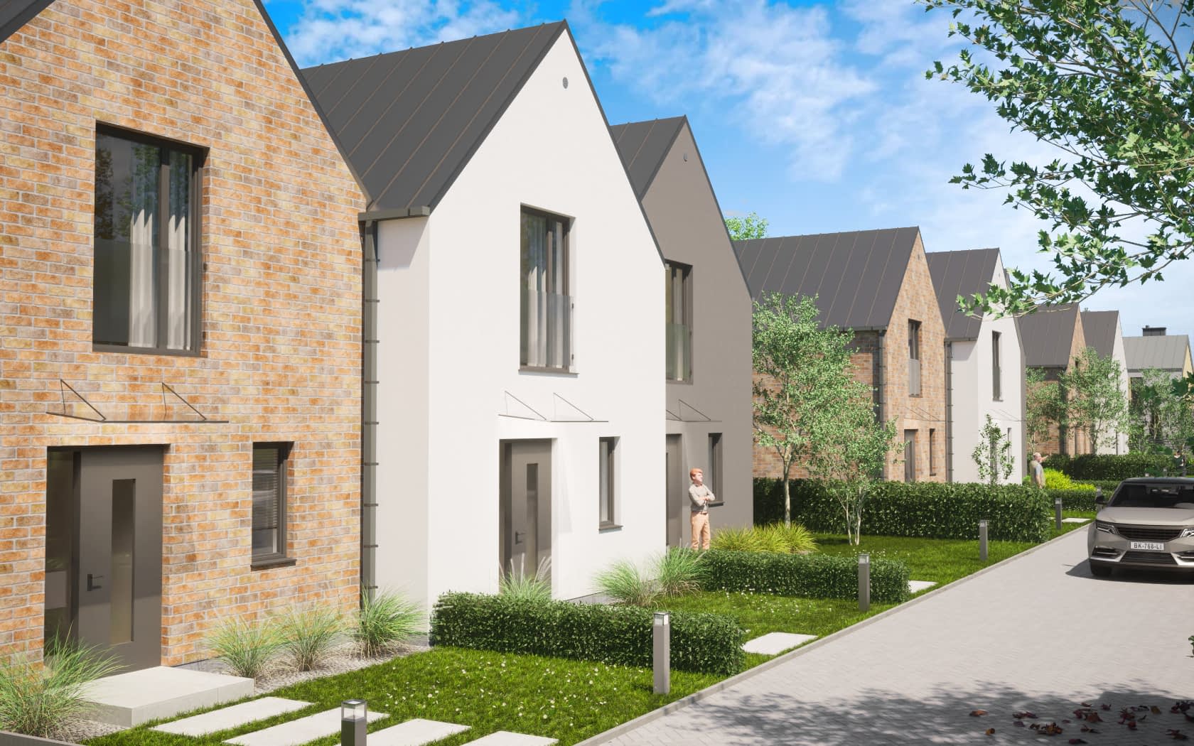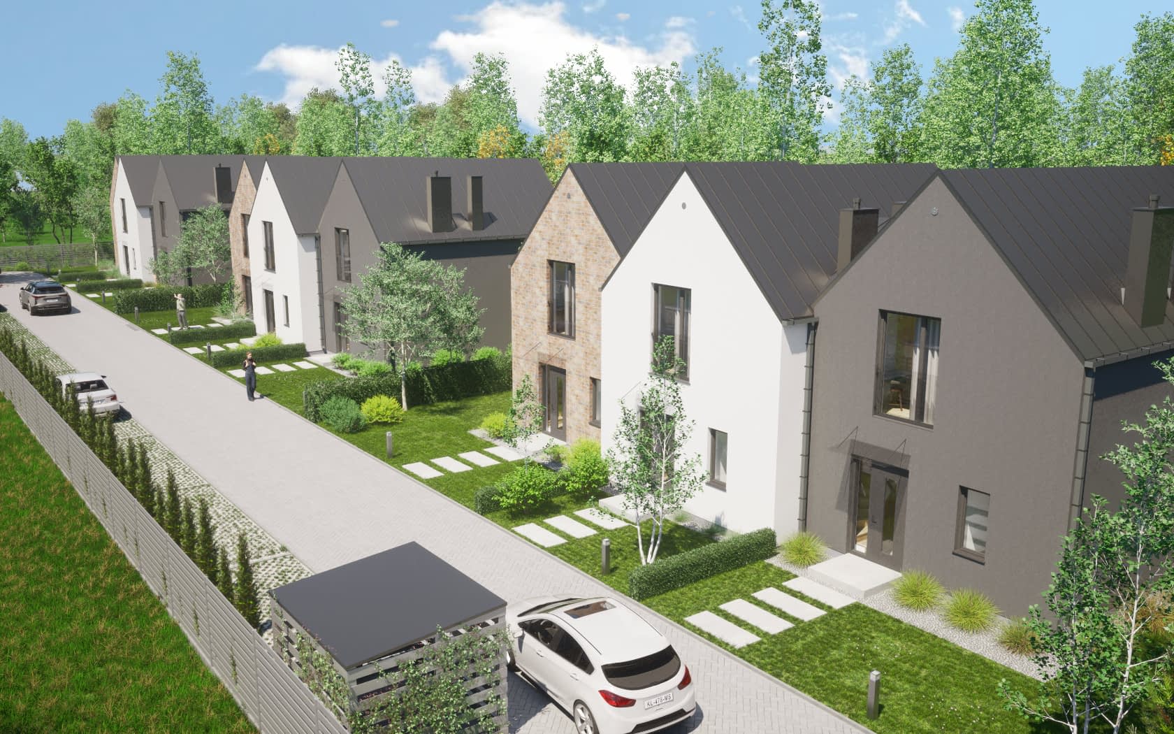 - elewacje (frontowa, dwie elewacje boczne, ogrodowa) – dokładny wygląd domu z każdej strony.