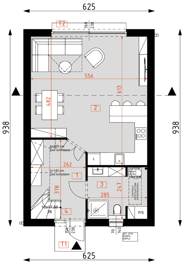 - Minimalne wymiary działki17.38 x 12.25m