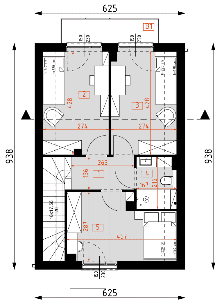 - rzuty wszystkich kondygnacji (np. parter, piwnica, piętro) – rozmieszczenie i wymiary wszystkich pomieszczeń, rozmieszczenie i wielkość otworów okiennych i drzwiowych, rozmieszczenie kominów, sugerowana aranżacja wnętrz.