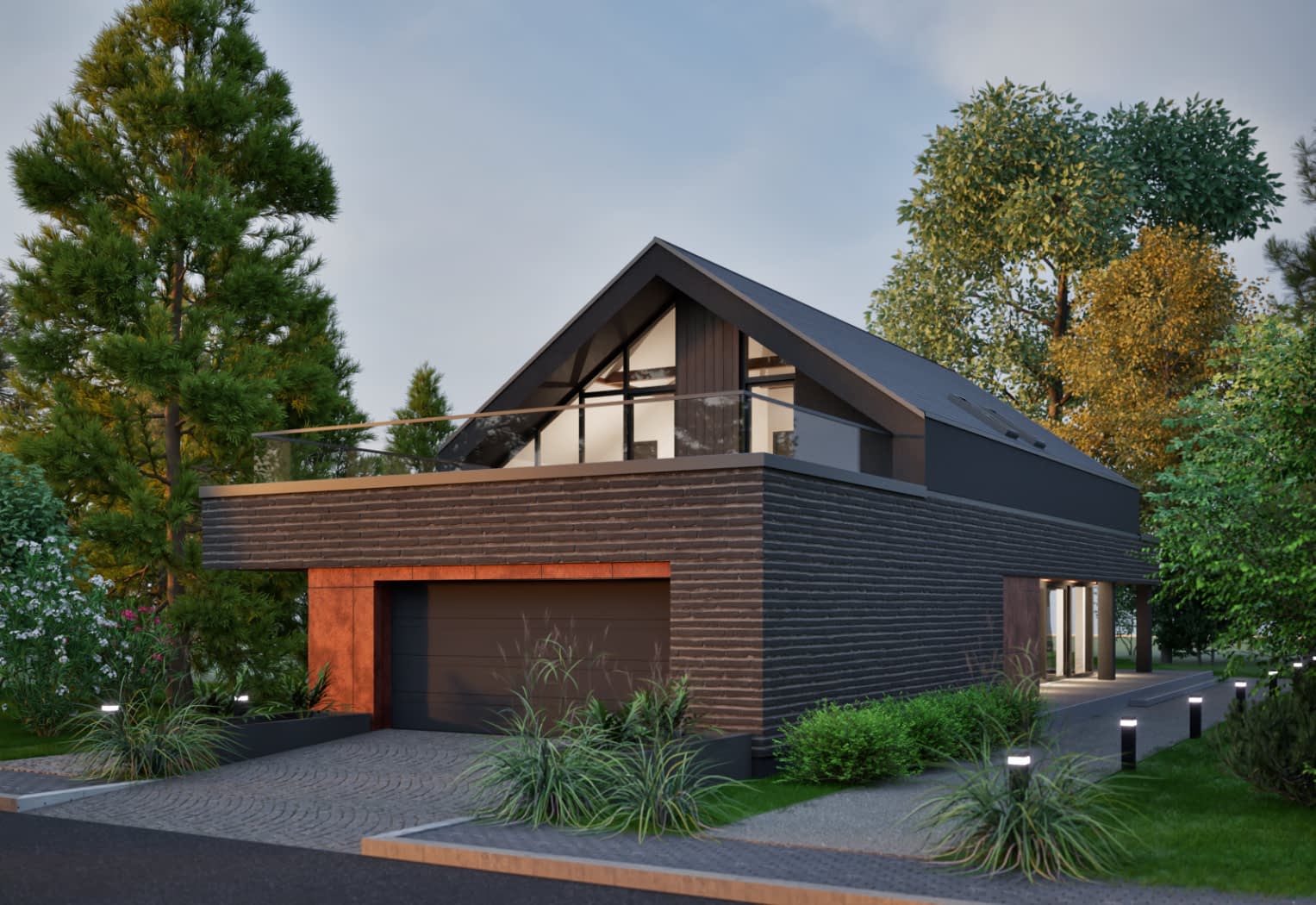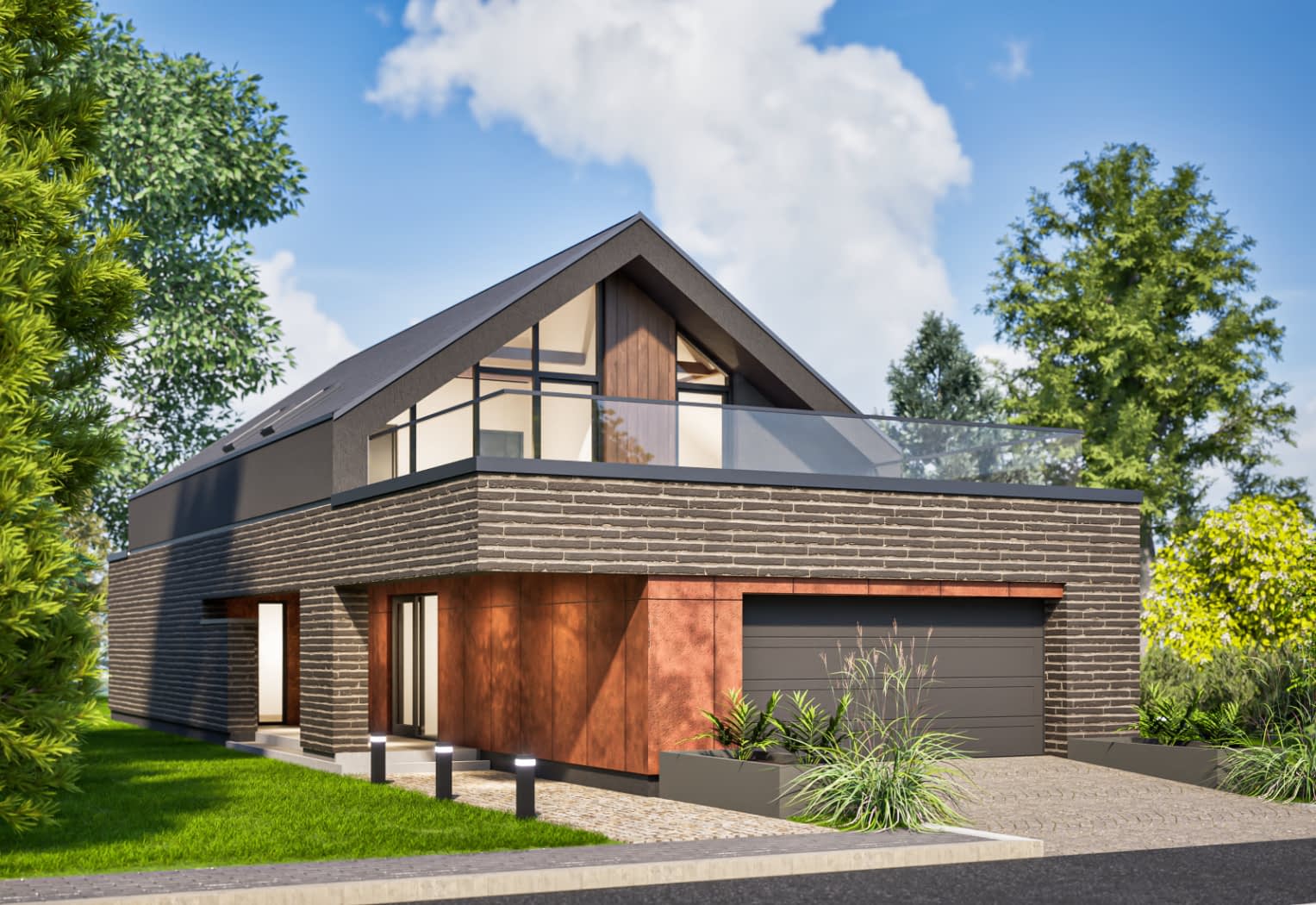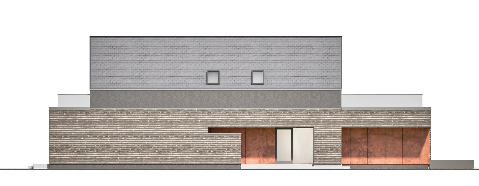 Elewacja: tynk elewacyjny cienkowarstwowy, płyty elewacyjne, deskowanie
