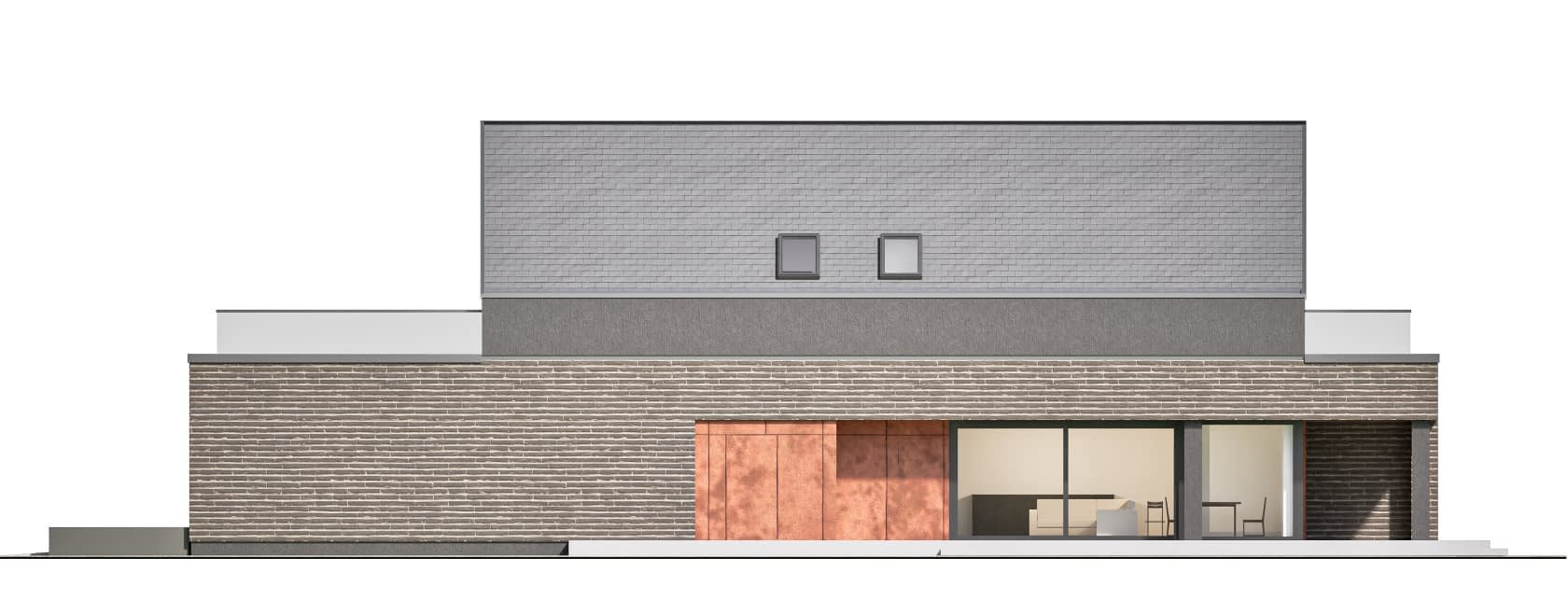 - elewacje (frontowa, dwie elewacje boczne, ogrodowa) – dokładny wygląd domu z każdej strony.