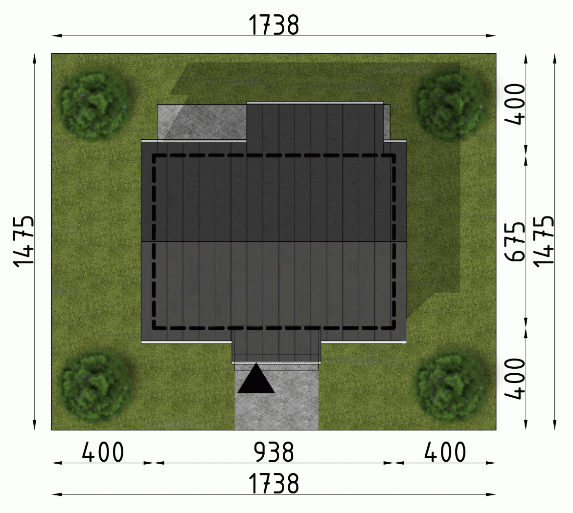- Minimalne wymiary działki14.75 x 17.38m