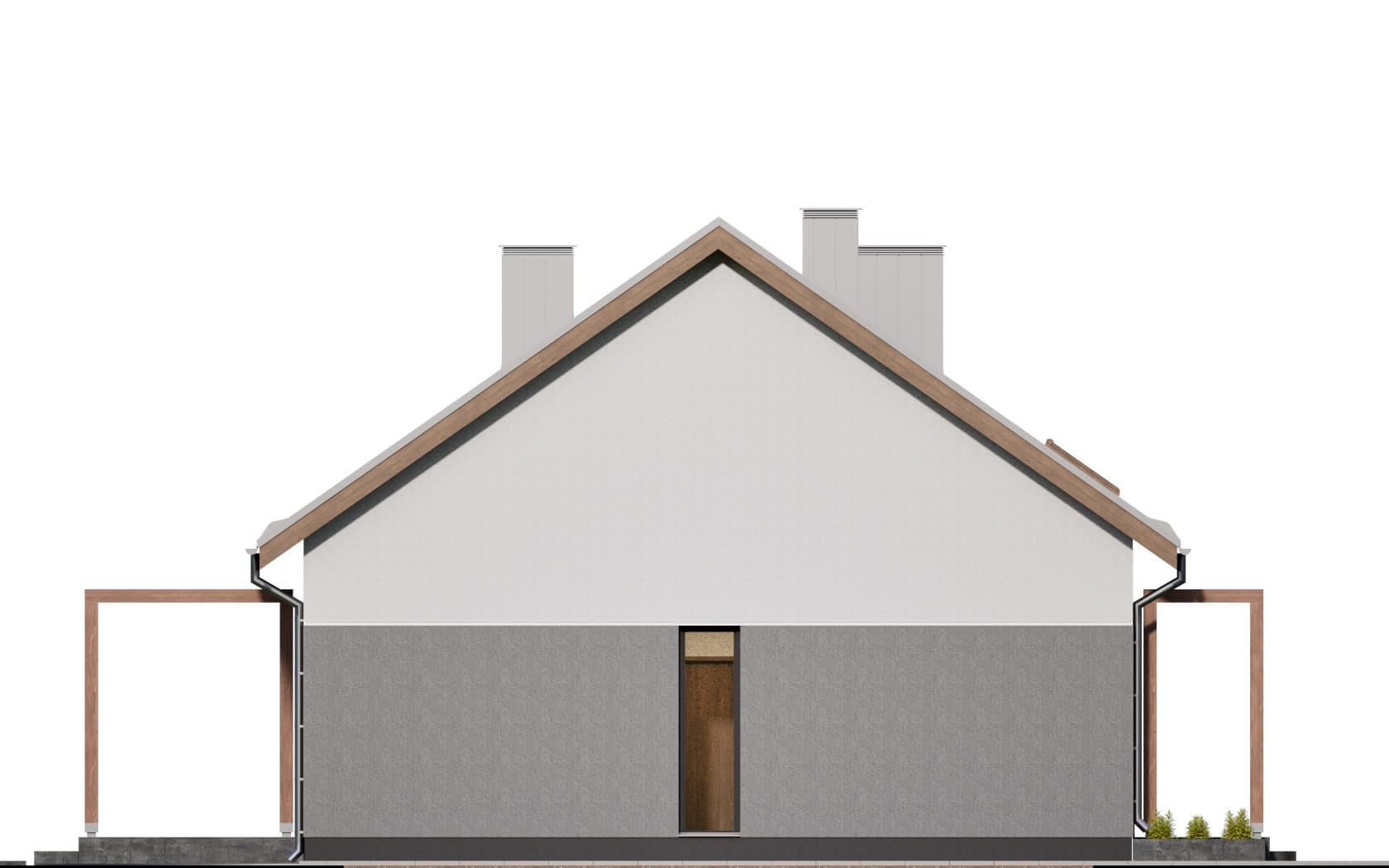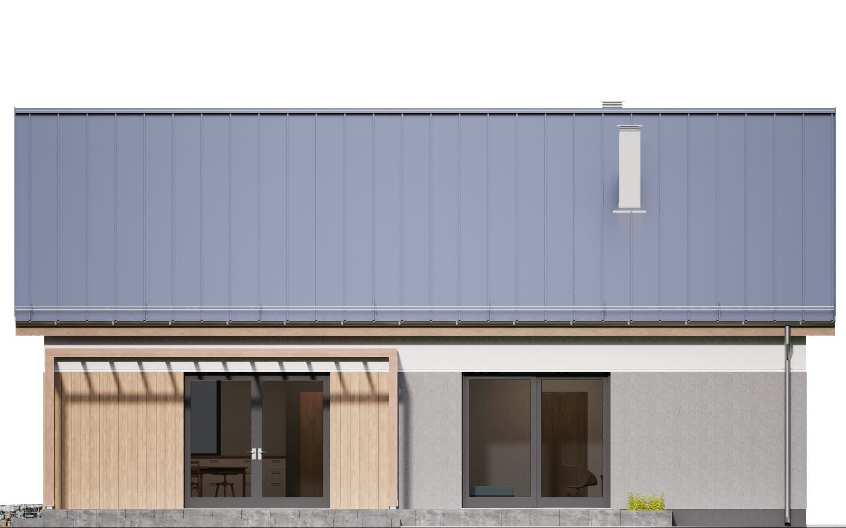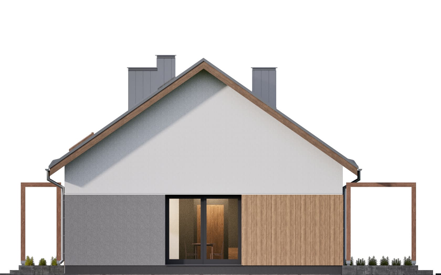 Elewacja: tynk elewacyjny cienkowarstwowy, na fragmentach deskowanie pionowe