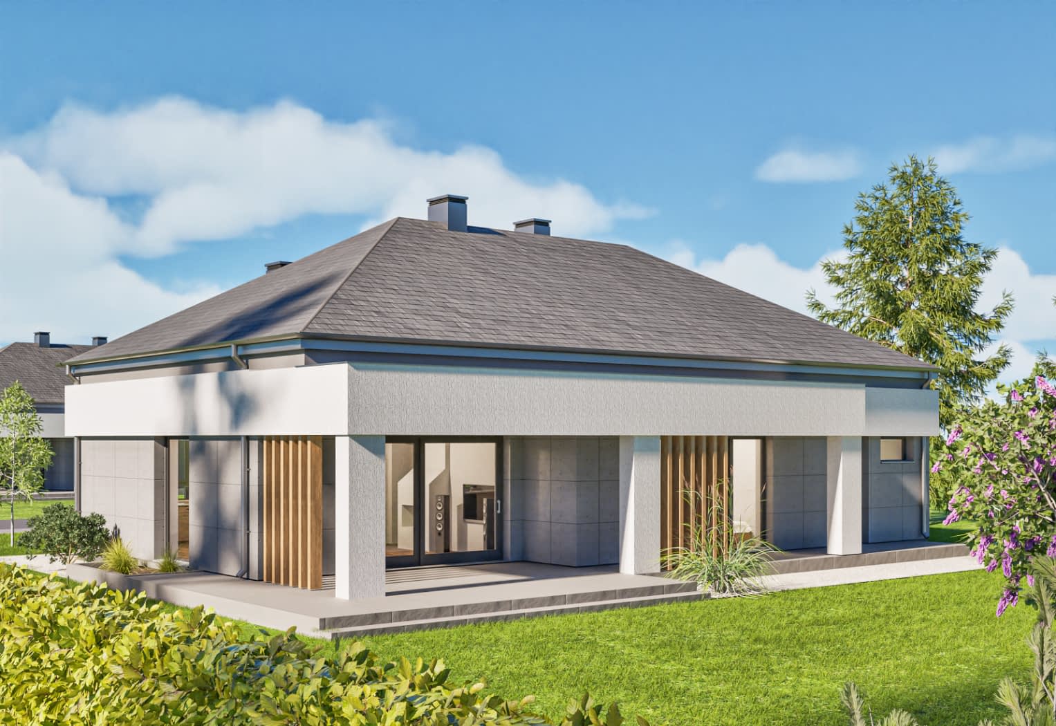 D422 to nowoczesny parterowy dom, w technologii murowanej.Konstrukcja