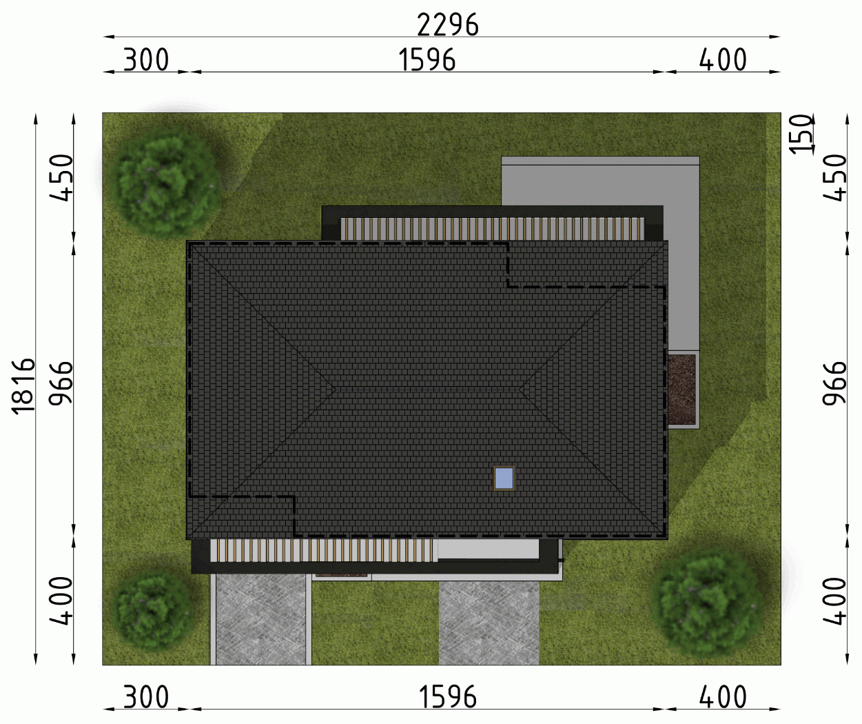 - Minimalne wymiary działki18.16 x 22.96m