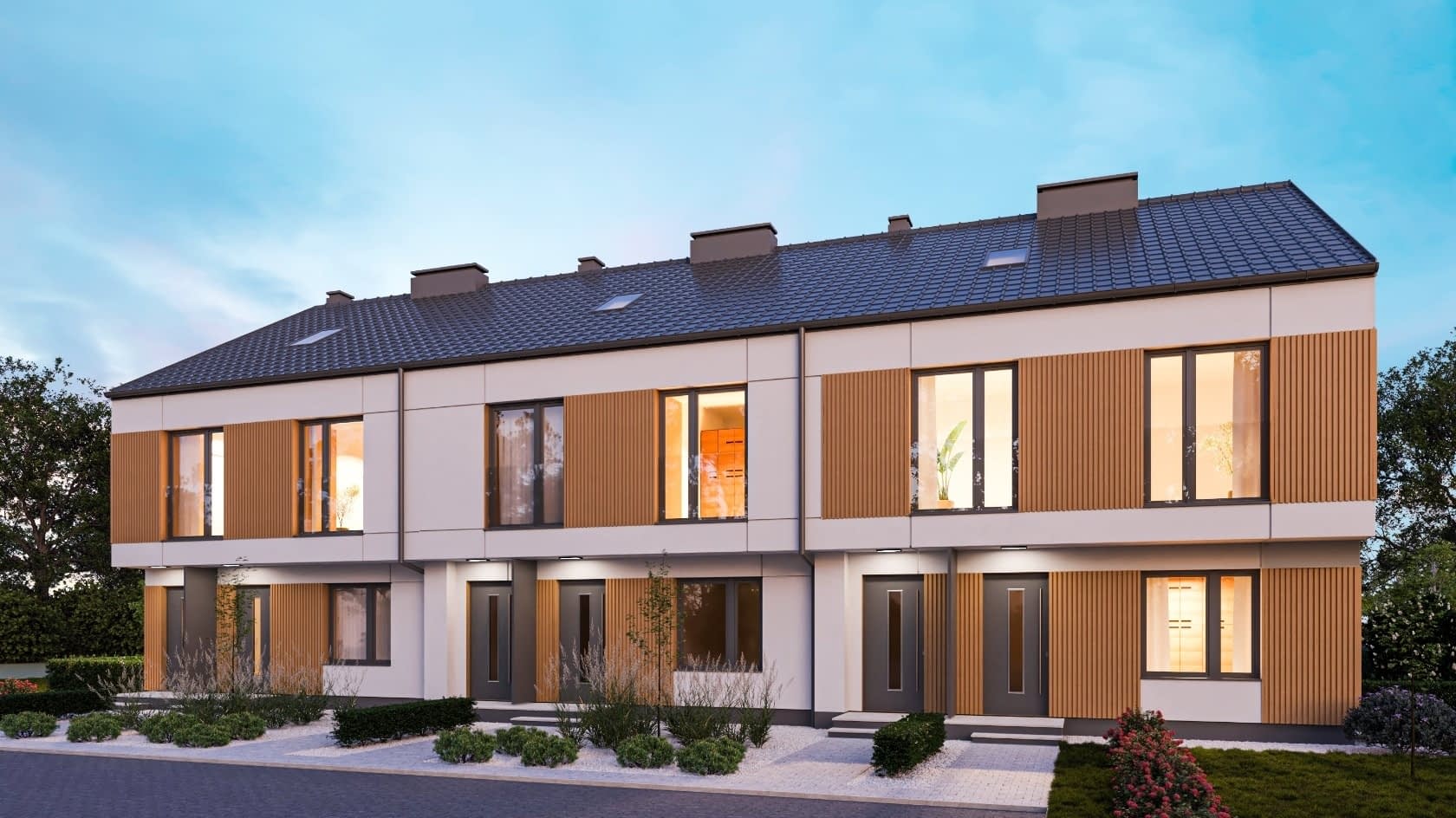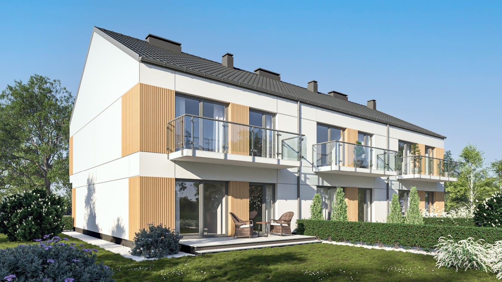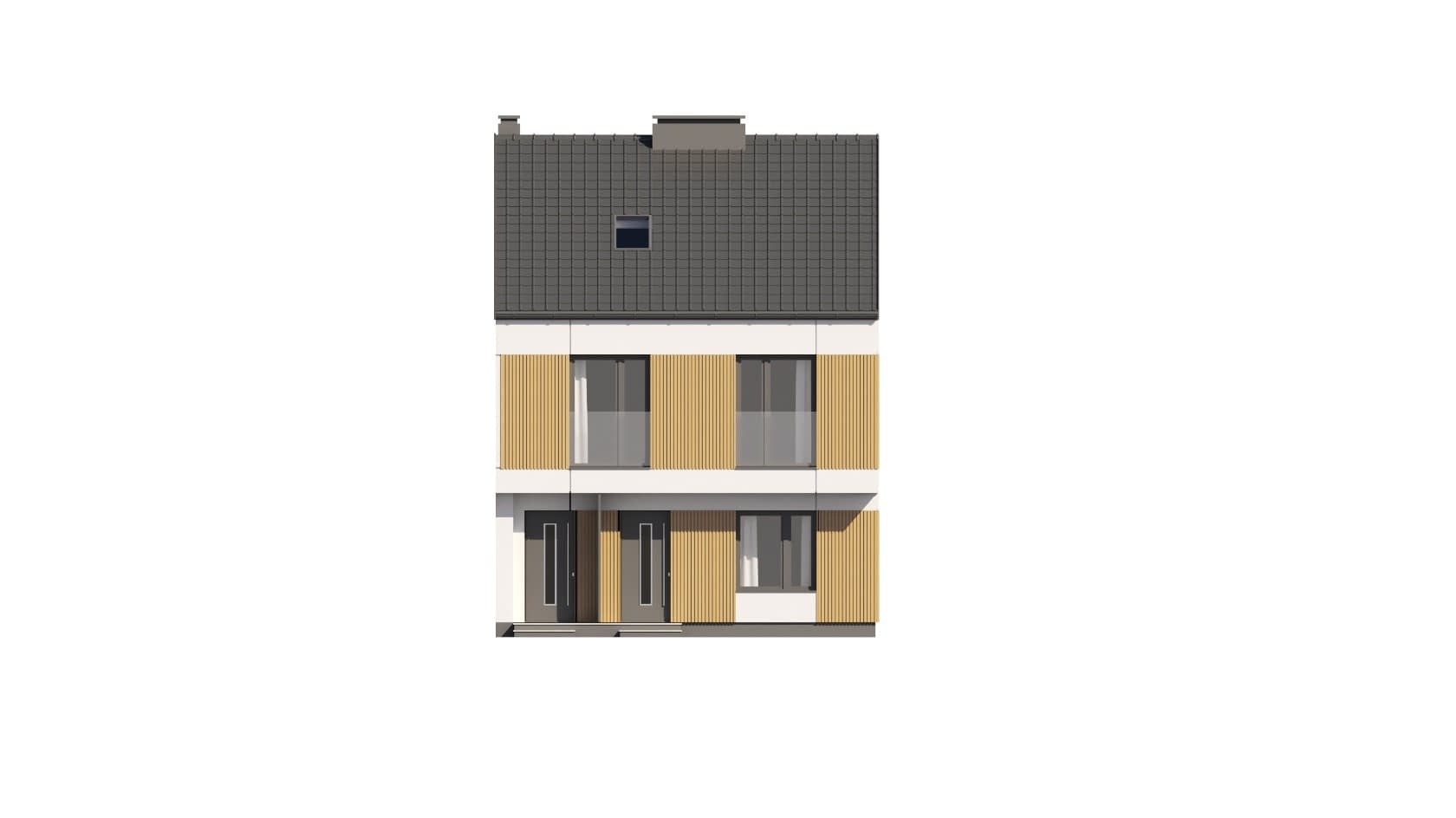 - elewacje (frontowa, dwie elewacje boczne, ogrodowa) – dokładny wygląd domu z każdej strony.