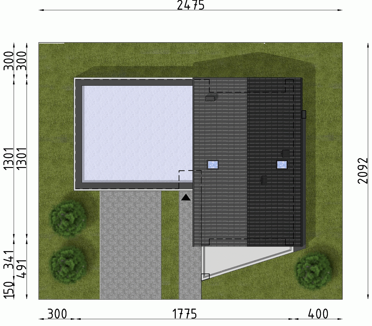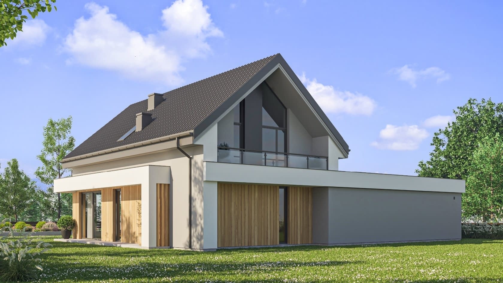 - elewacje (frontowa, dwie elewacje boczne, ogrodowa) – dokładny wygląd domu z każdej strony.