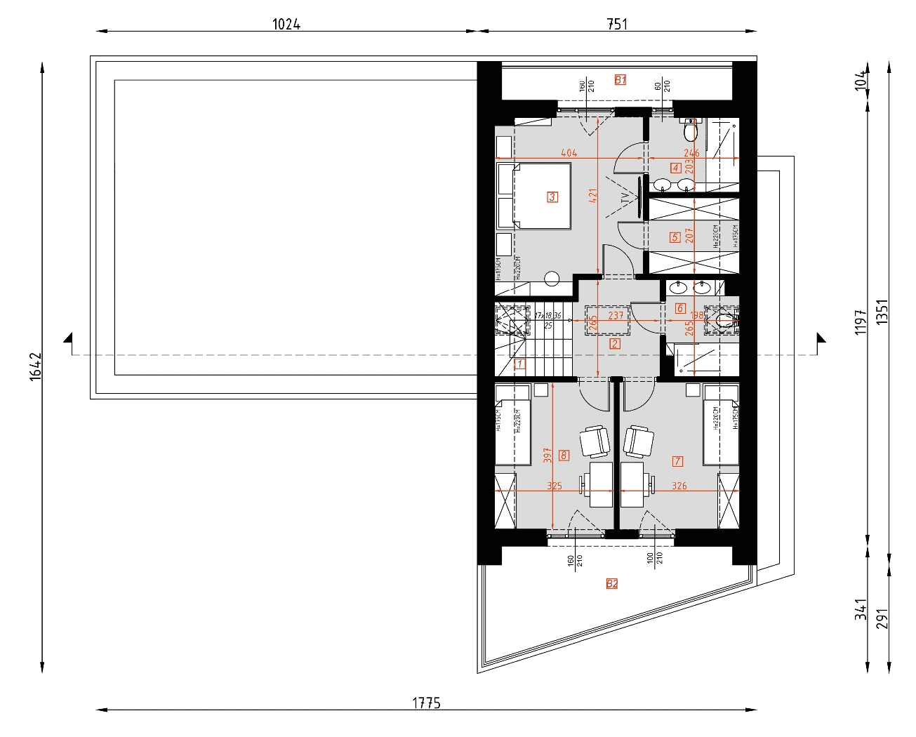 - rzuty wszystkich kondygnacji (np. parter, piwnica, piętro) – rozmieszczenie i wymiary wszystkich pomieszczeń, rozmieszczenie i wielkość otworów okiennych i drzwiowych, rozmieszczenie kominów, sugerowana aranżacja wnętrz.