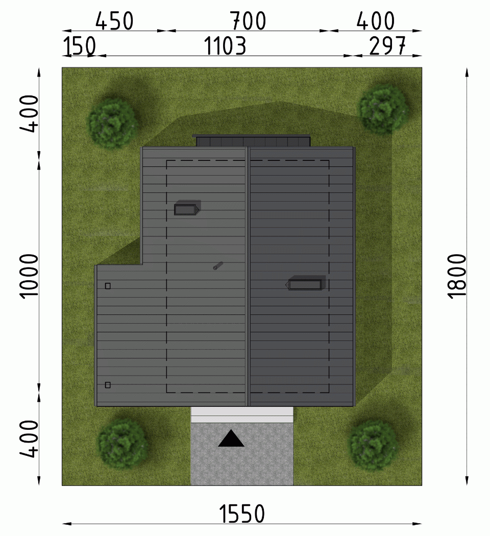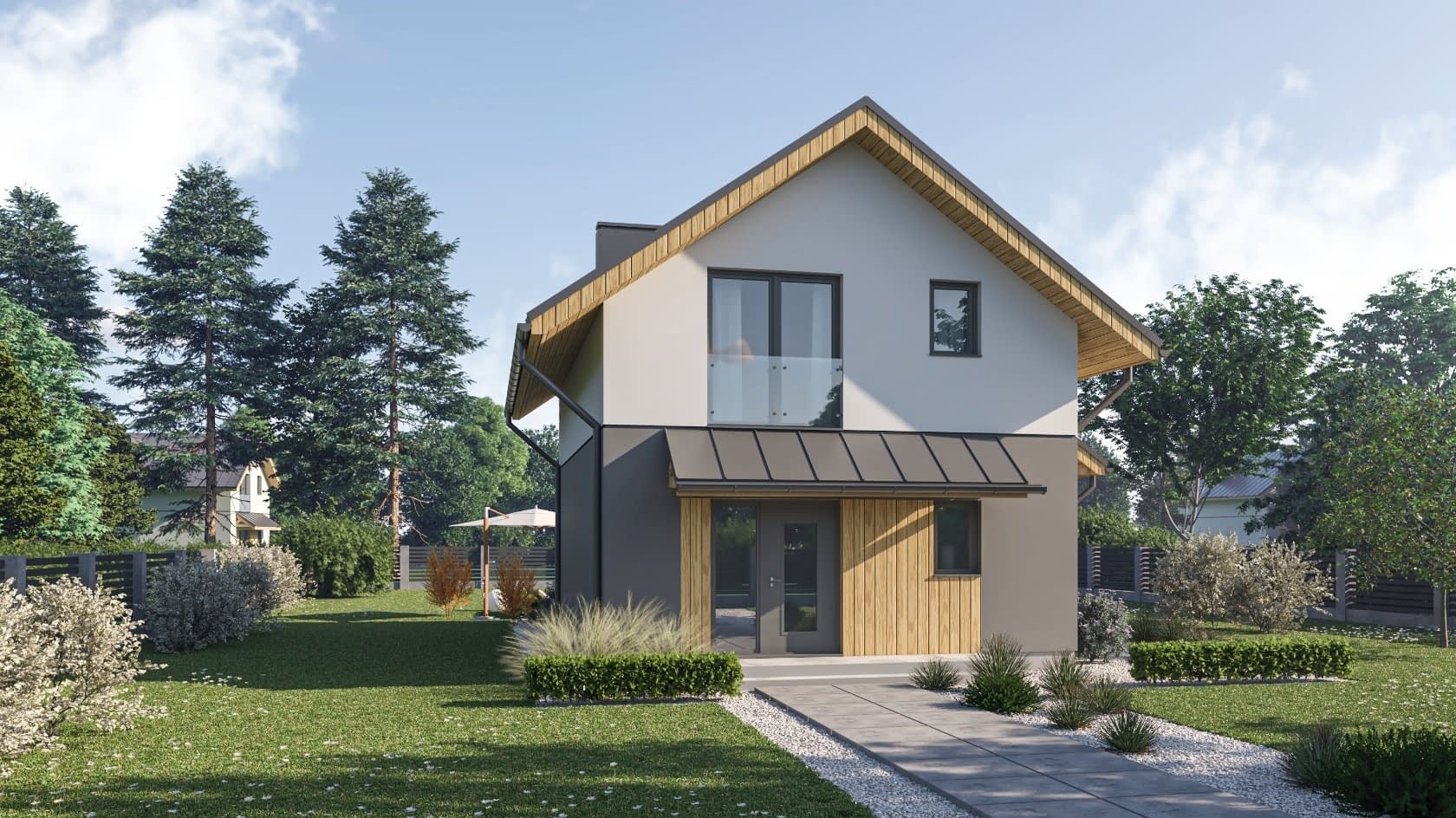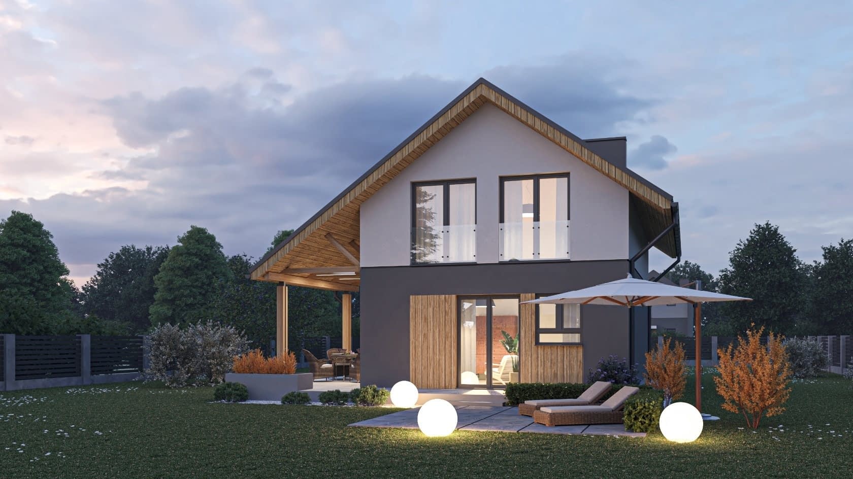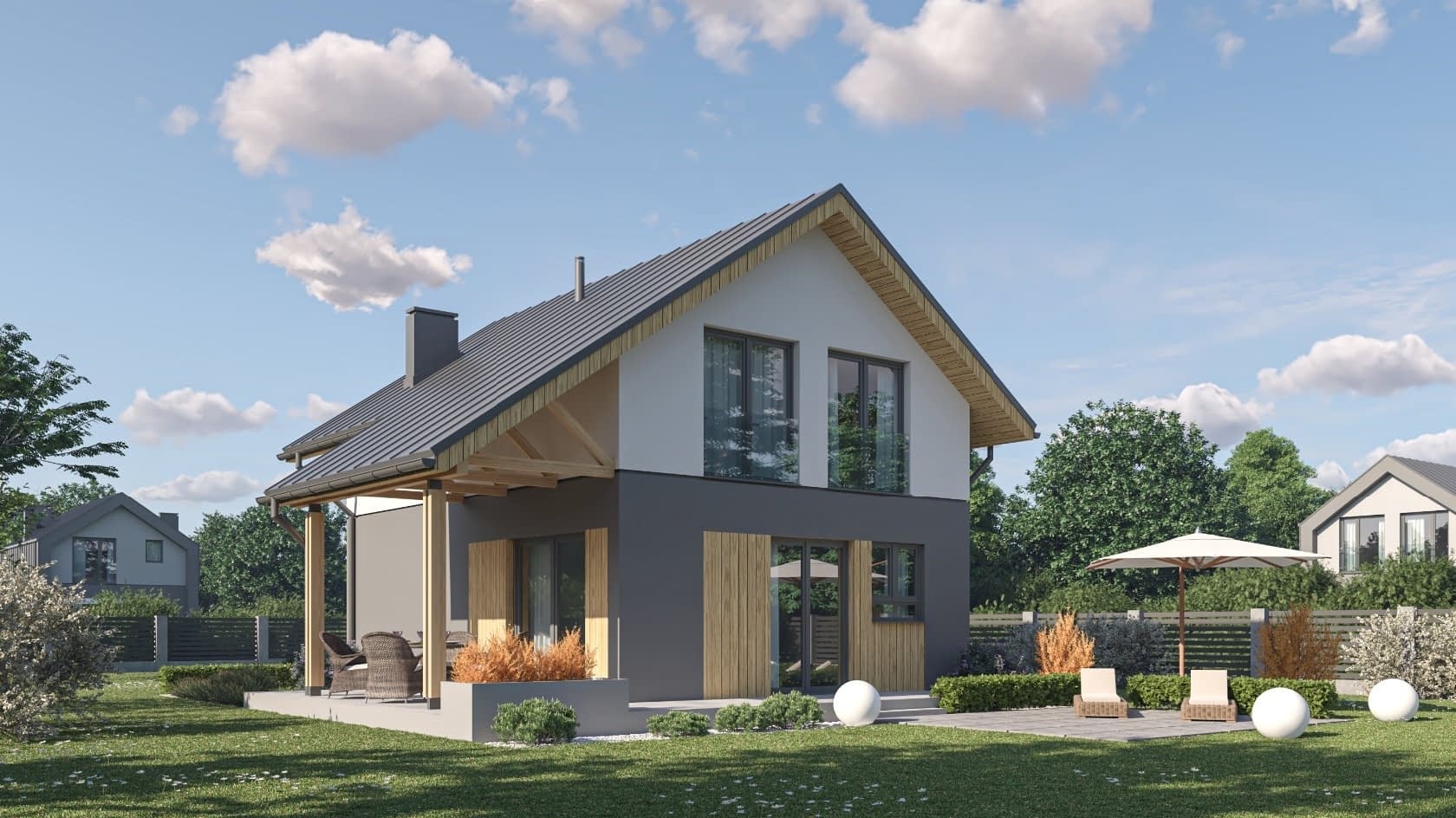 - elewacje (frontowa, dwie elewacje boczne, ogrodowa) – dokładny wygląd domu z każdej strony.