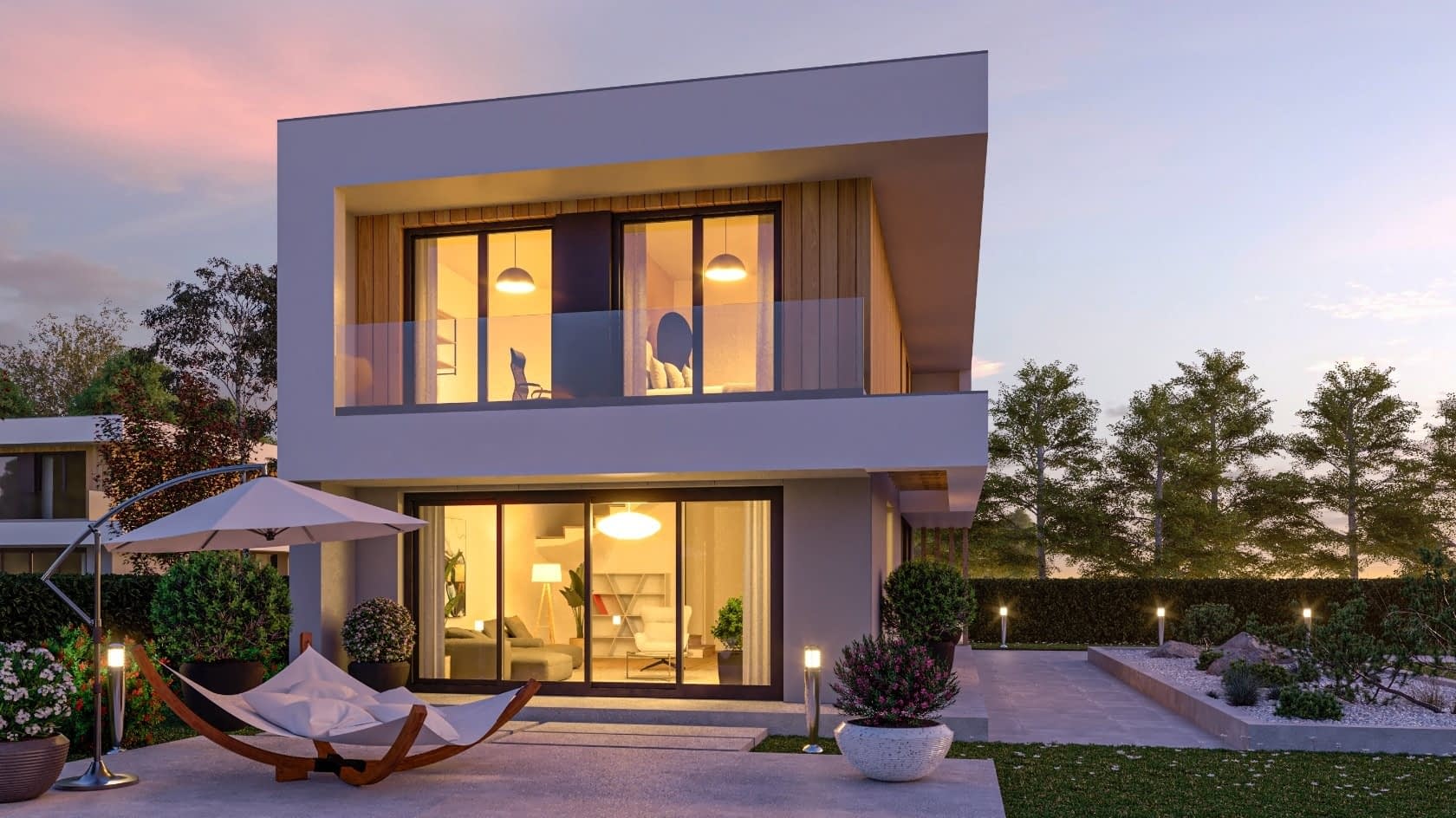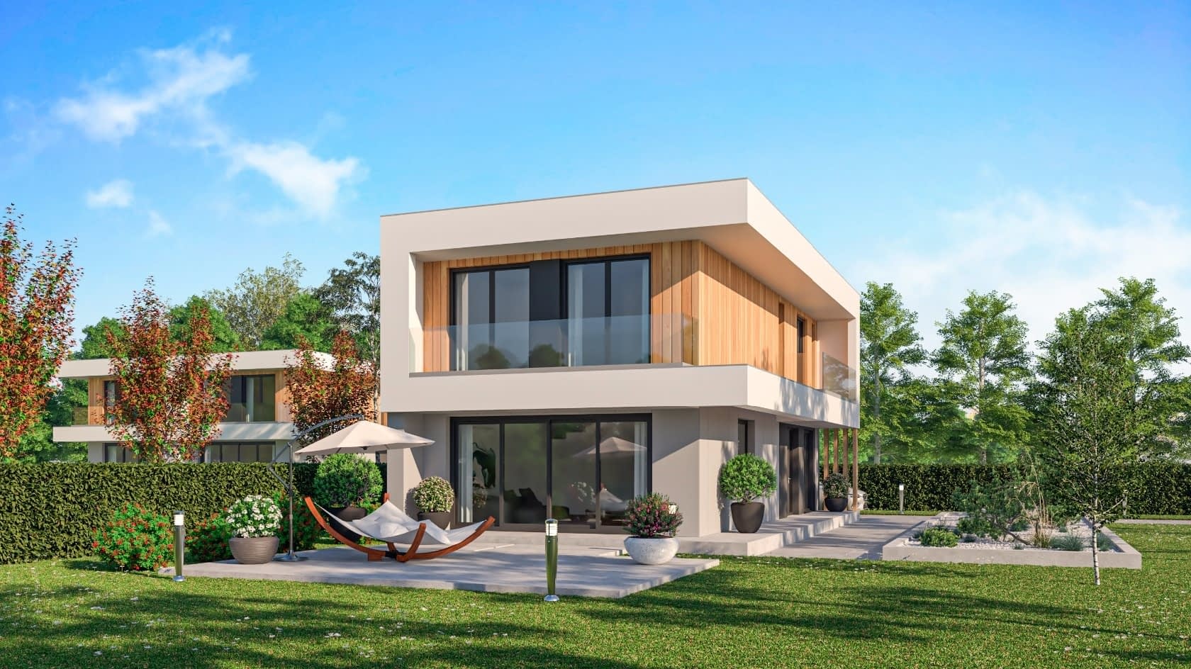 - elewacje (frontowa, dwie elewacje boczne, ogrodowa) – dokładny wygląd domu z każdej strony.