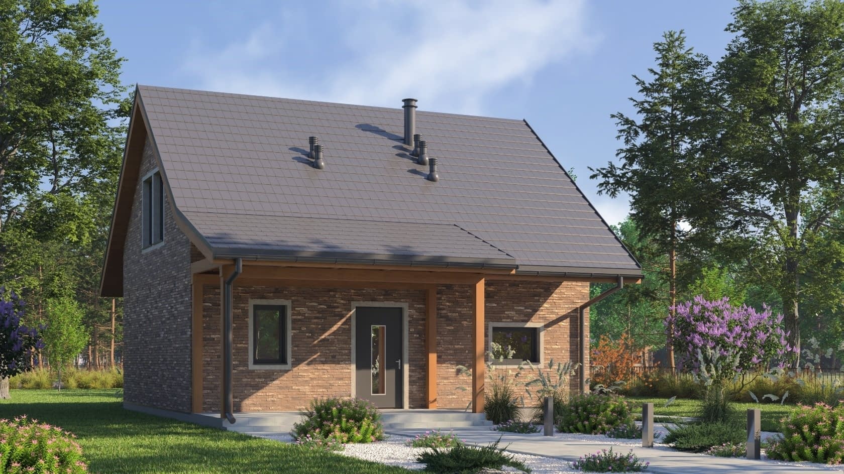 Dom jednorodzinny z poddaszem użytkowym w technologii murowanej.