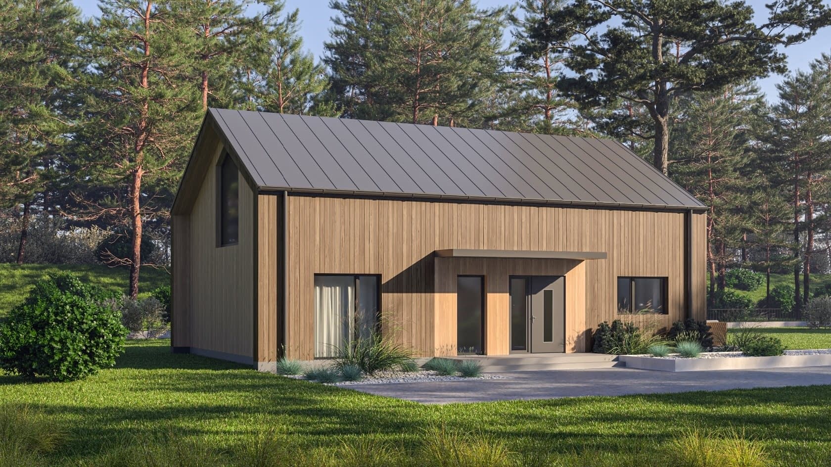 - elewacje (frontowa, dwie elewacje boczne, ogrodowa) – dokładny wygląd domu z każdej strony.
