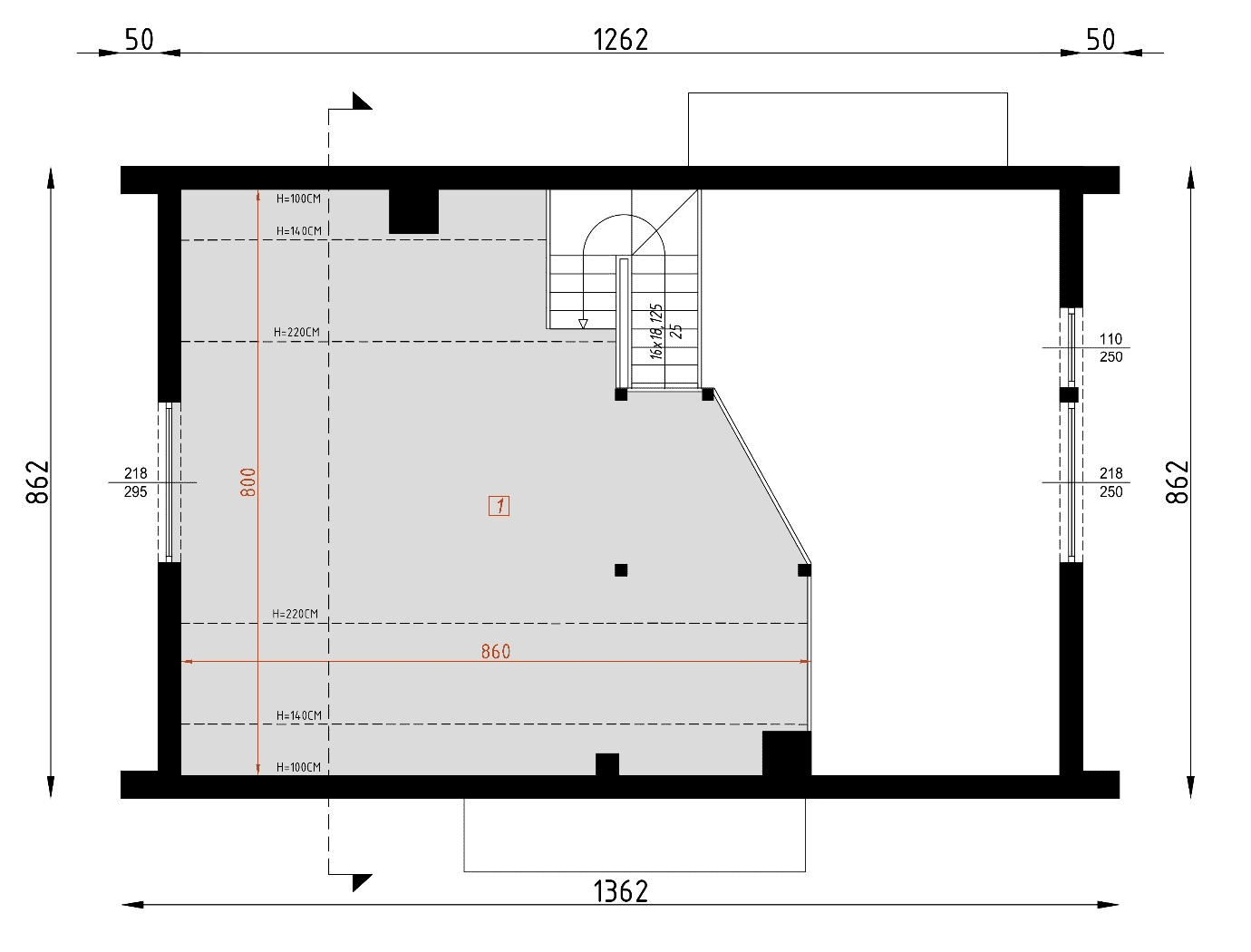 - rzuty wszystkich kondygnacji (np. parter, piwnica, piętro) – rozmieszczenie i wymiary wszystkich pomieszczeń, rozmieszczenie i wielkość otworów okiennych i drzwiowych, rozmieszczenie kominów, sugerowana aranżacja wnętrz.
