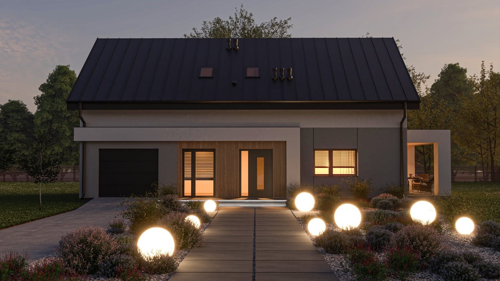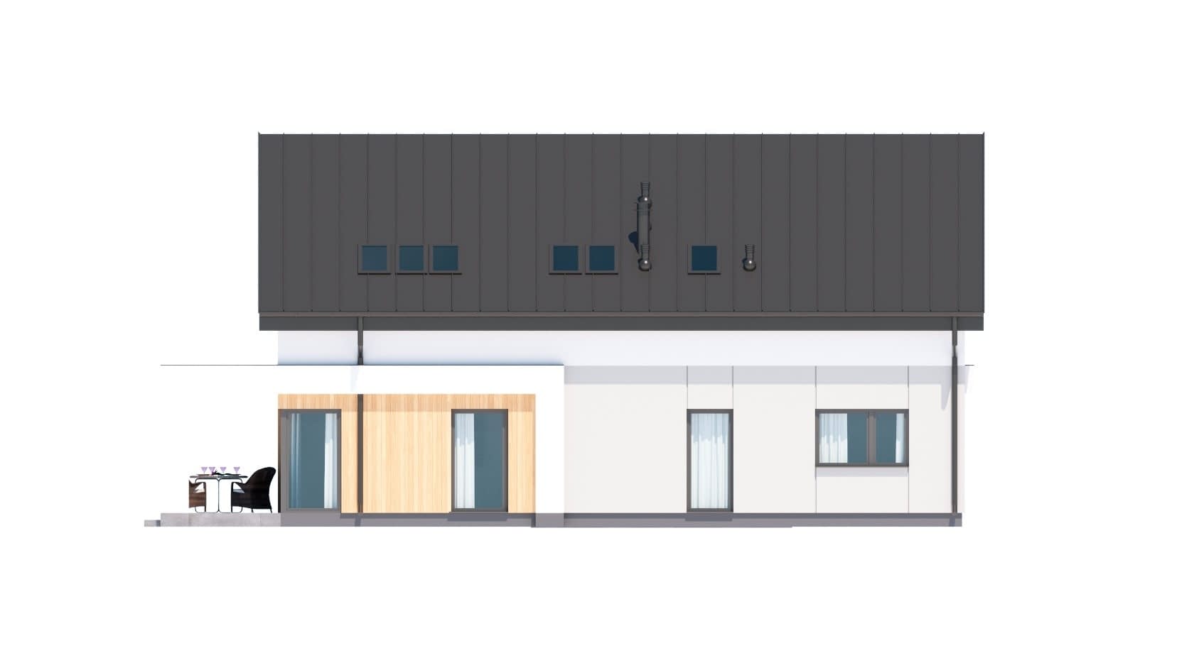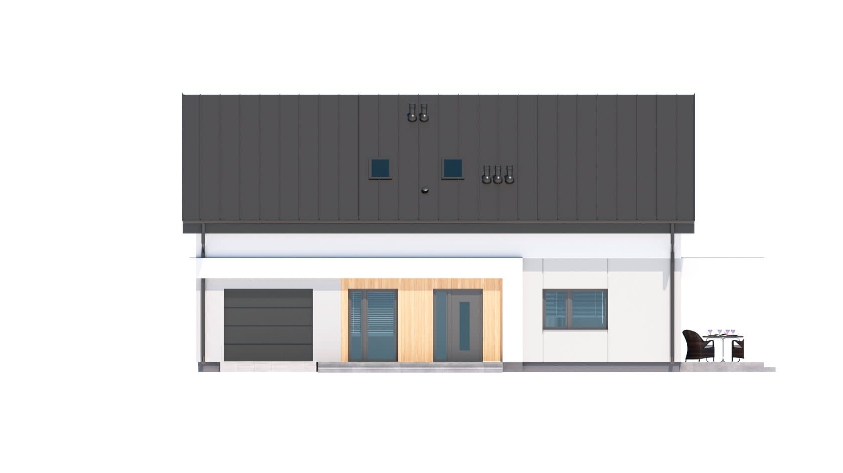 - elewacje (frontowa, dwie elewacje boczne, ogrodowa) – dokładny wygląd domu z każdej strony.