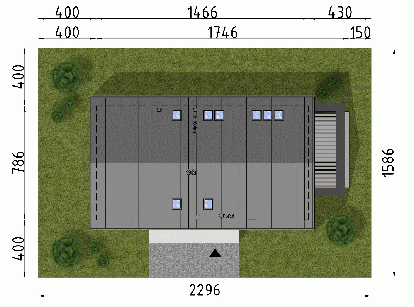 - Minimalne wymiary działki15.86 x 22.96m