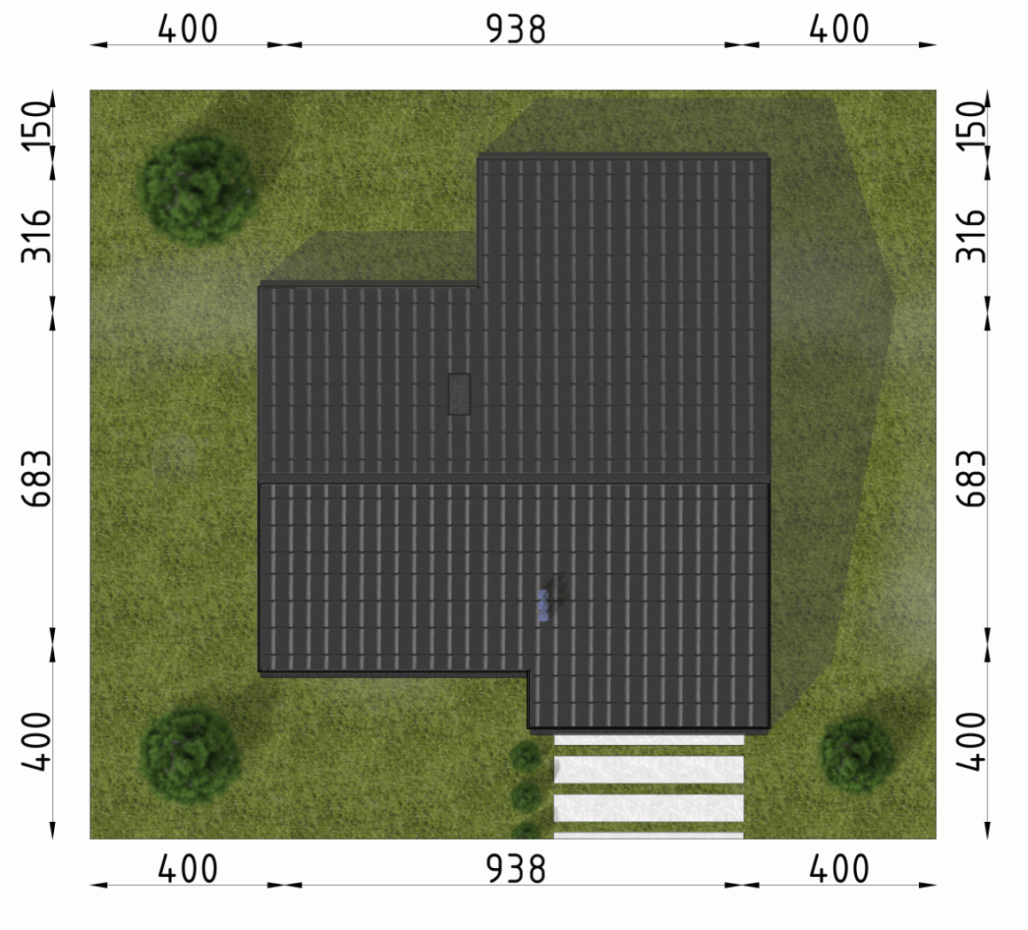 - elewacje (frontowa, dwie elewacje boczne, ogrodowa) – dokładny wygląd domu z każdej strony.