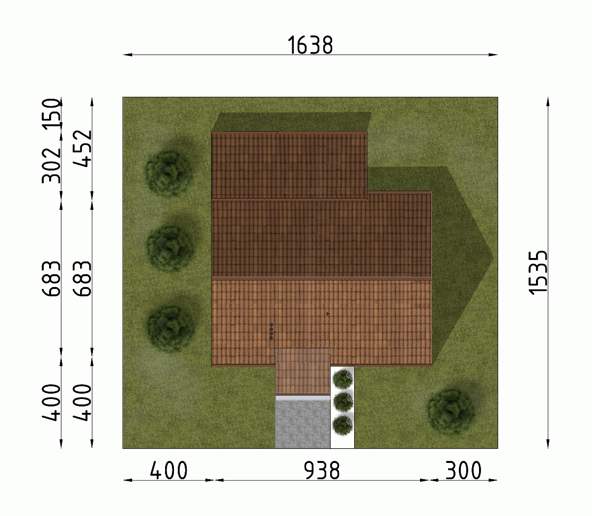 - Minimalne wymiary działki16.38 x 15.35m