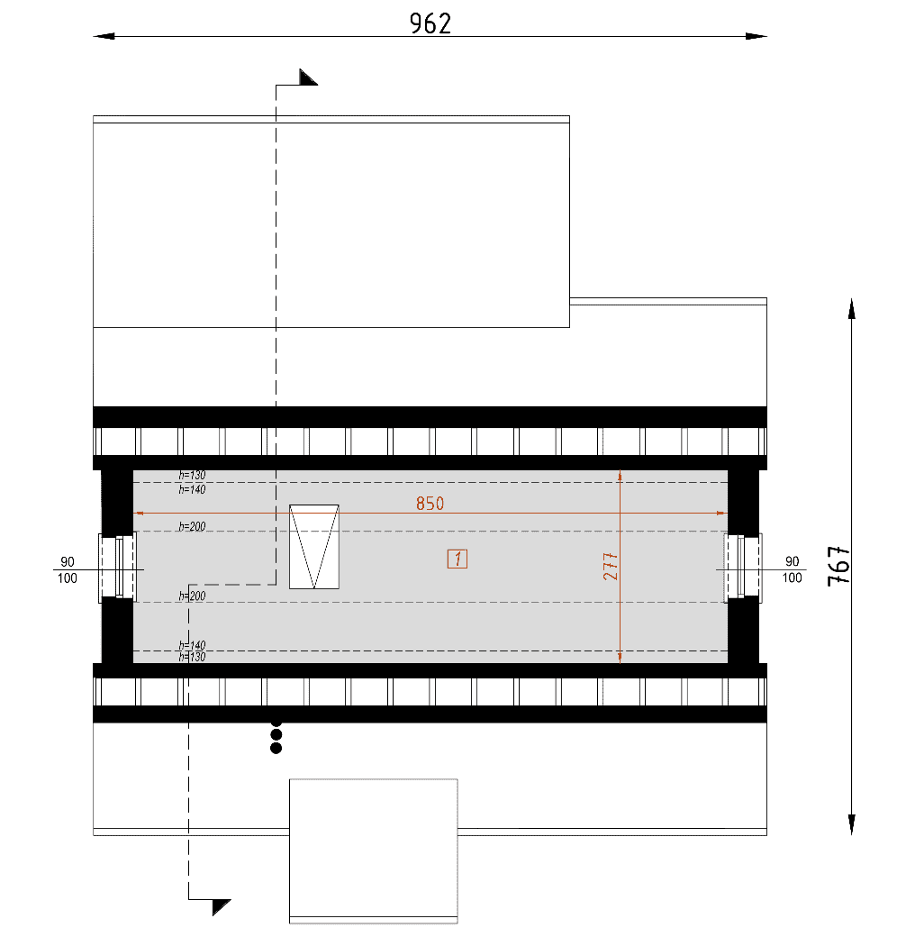 - rzut dachu – wymiary dachu, kąt nachylenia wszystkich połaci dachu, rozmieszczenie okien połaciowych, lukarn, kominów.