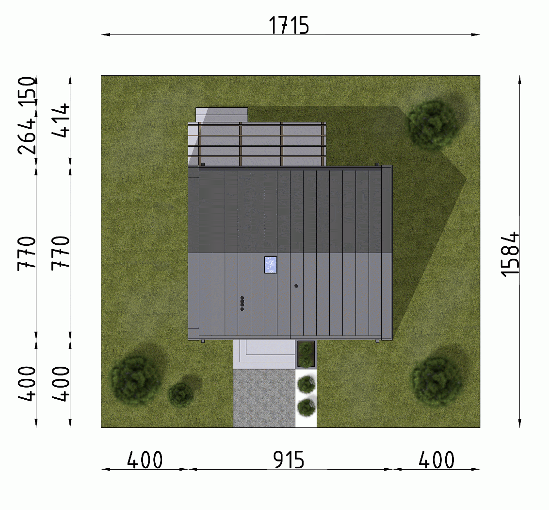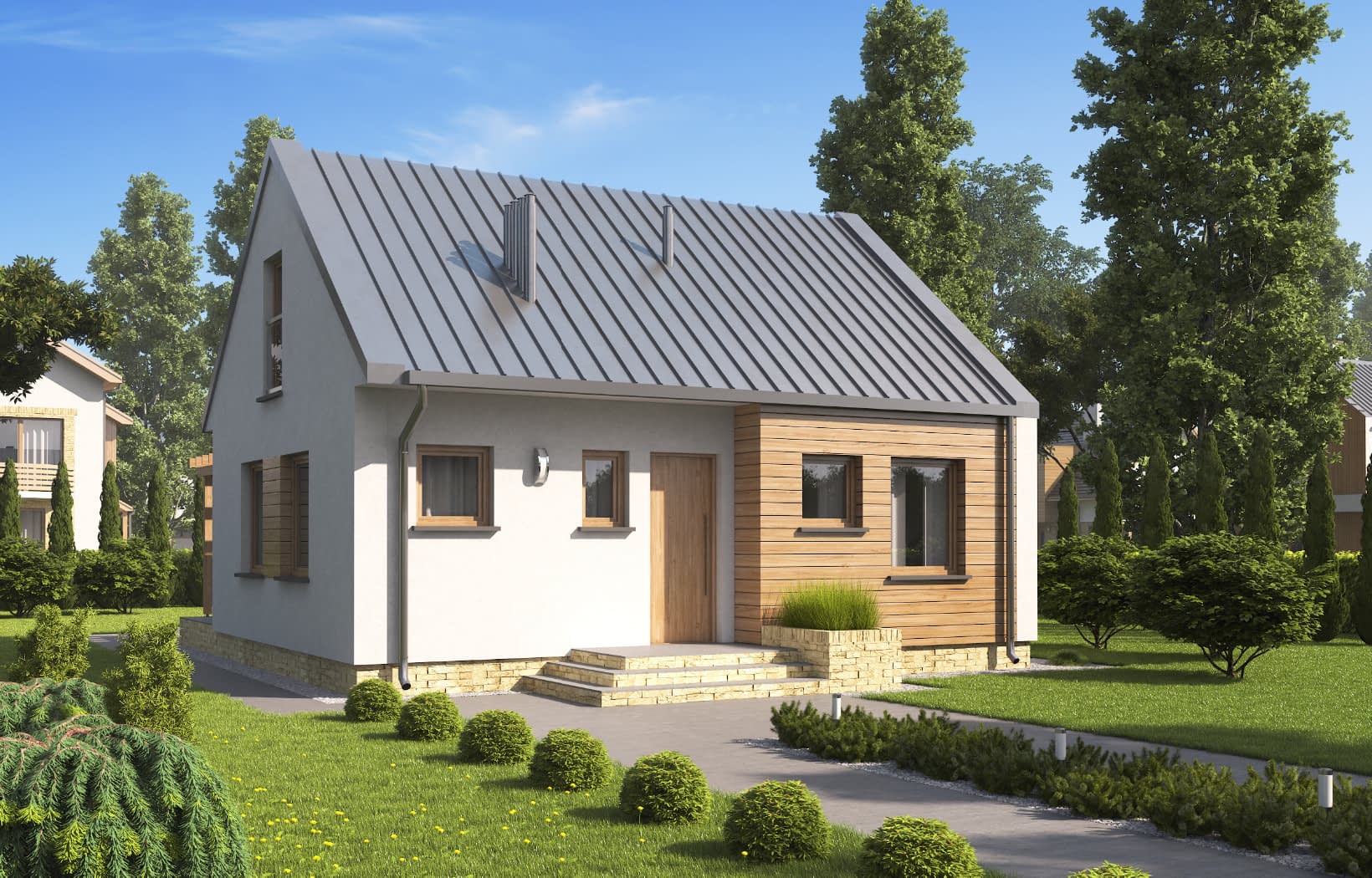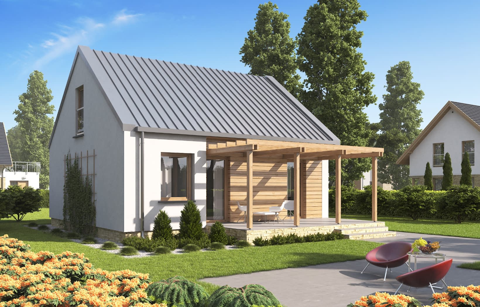 - elewacje (frontowa, dwie elewacje boczne, ogrodowa) – dokładny wygląd domu z każdej strony.