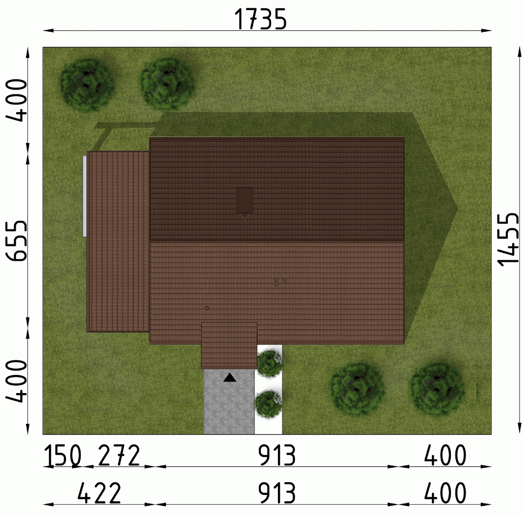 - Minimalne wymiary działki14.55 x 17.35m