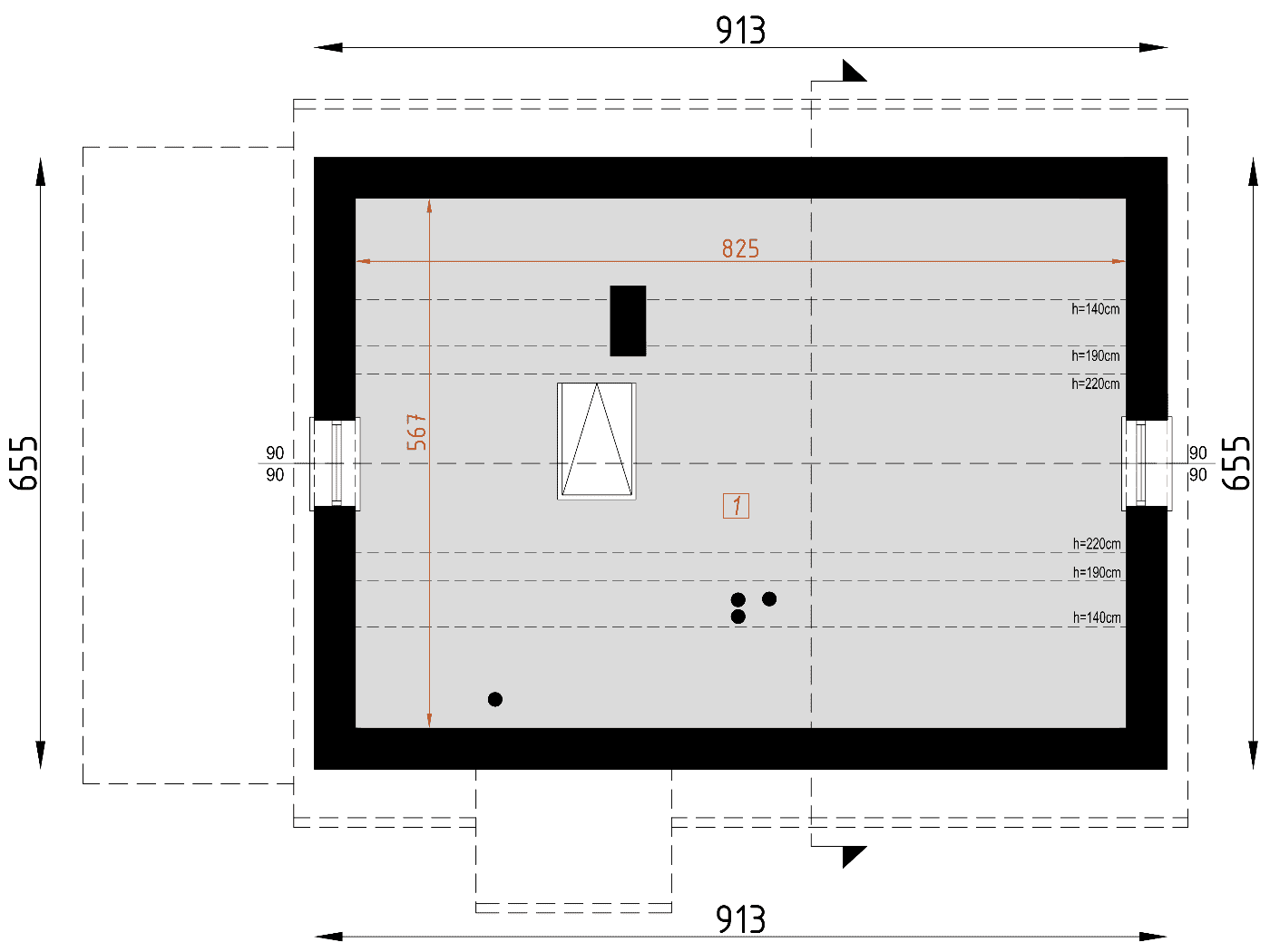 - rzuty wszystkich kondygnacji (np. parter, piwnica, piętro) – rozmieszczenie i wymiary wszystkich pomieszczeń, rozmieszczenie i wielkość otworów okiennych i drzwiowych, rozmieszczenie kominów, sugerowana aranżacja wnętrz.