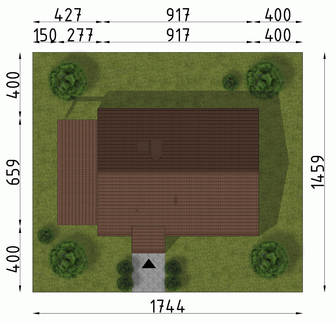 - elewacje (frontowa, dwie elewacje boczne, ogrodowa) – dokładny wygląd domu z każdej strony.