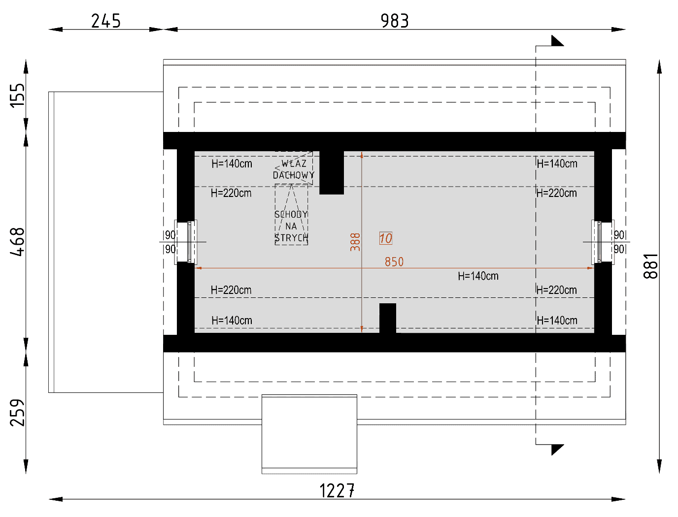 - rzut więźby dachowej – wymiary i rozmieszczenie elementów konstrukcji dachu.